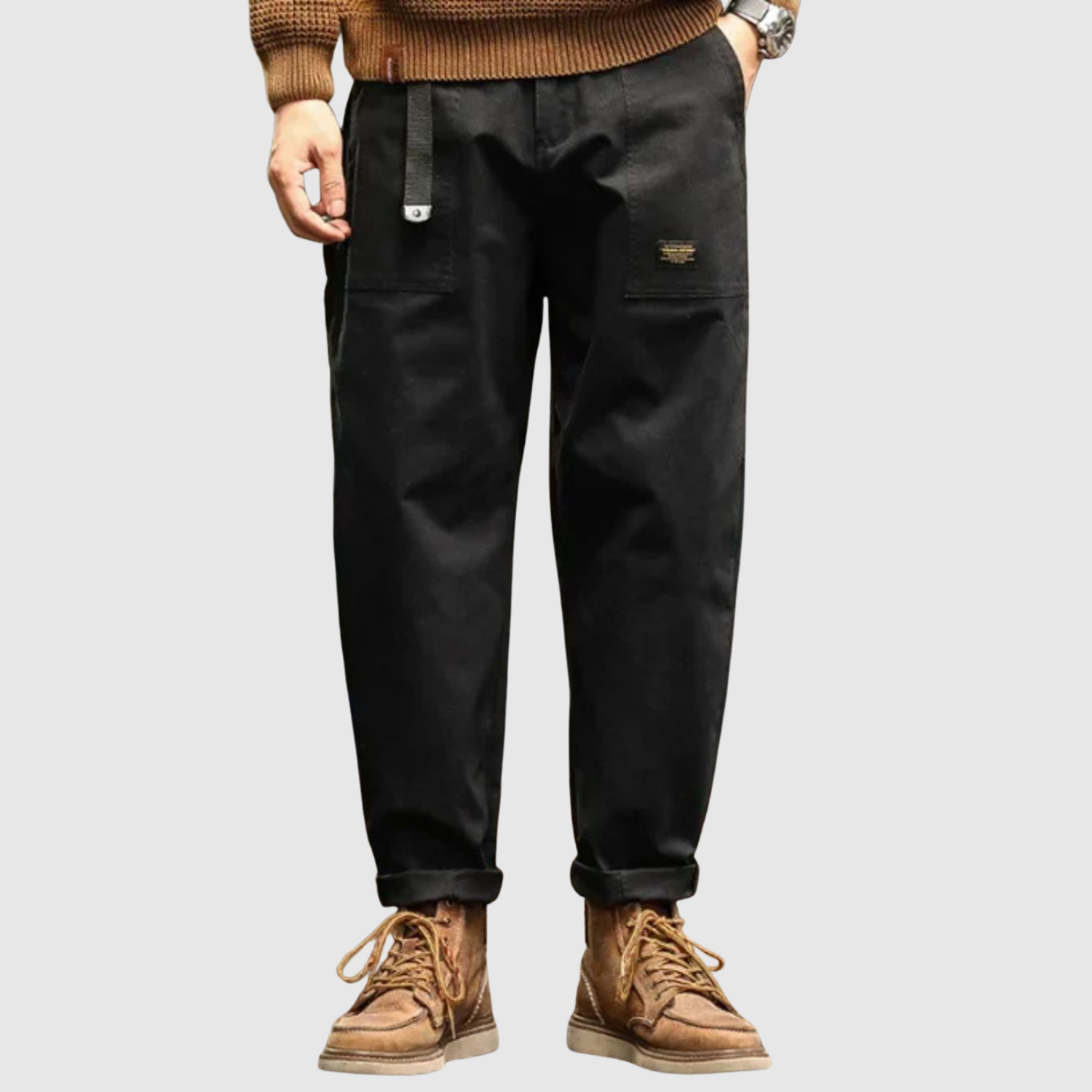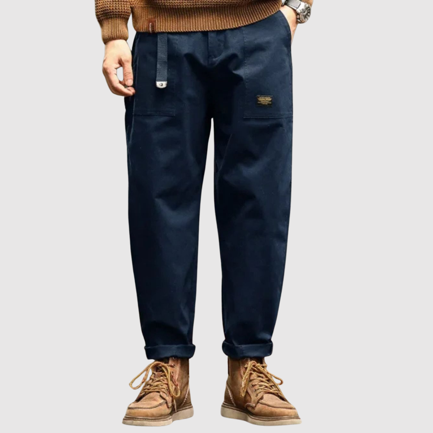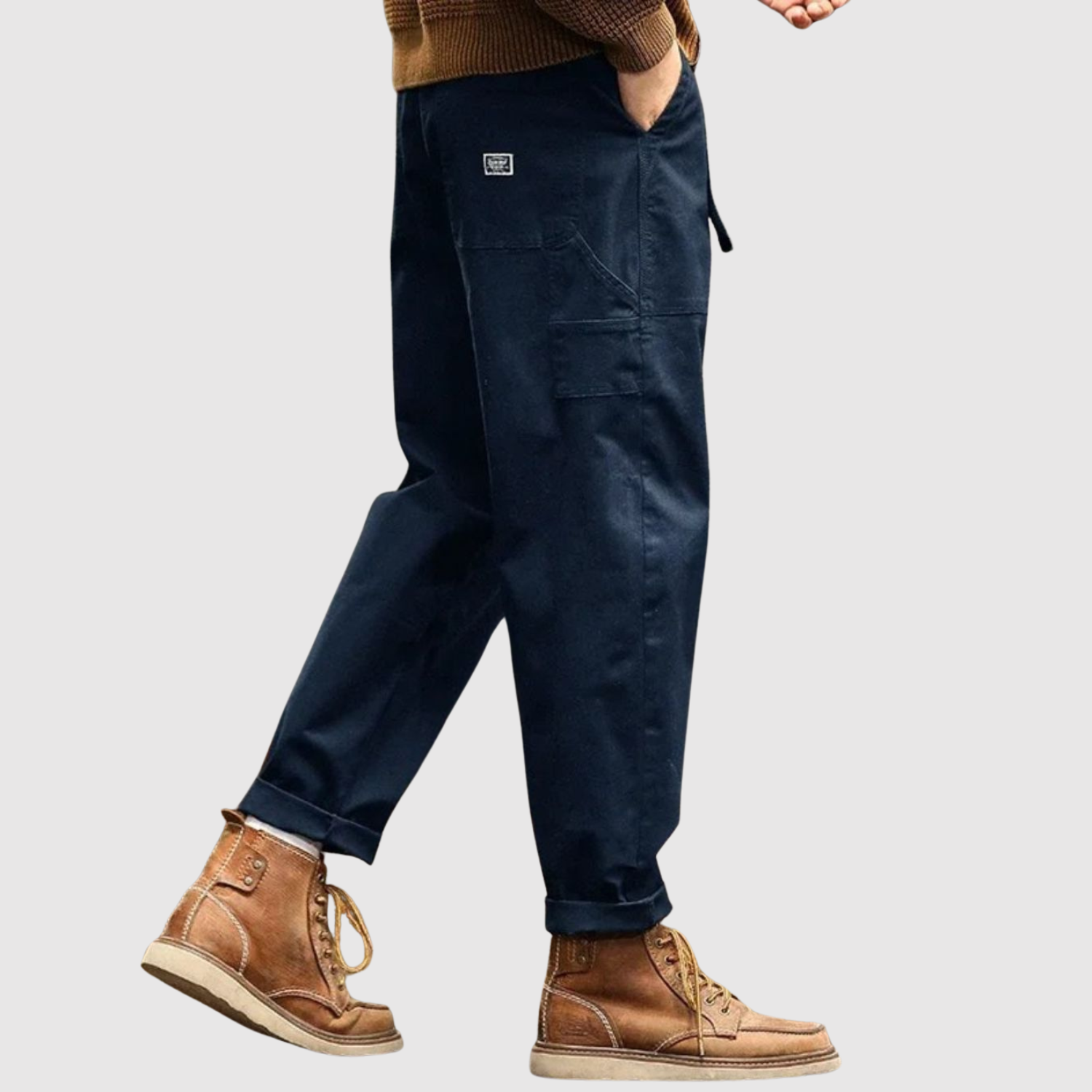 Тези кargo панталони съчетават комфорт с практични детайли, което ги прави идеални както за свободното време, така и за дейности на открито. Със своята свободна кройка и просторни джобове получавате както свобода на движение, така и модерен, мъжествен вид.