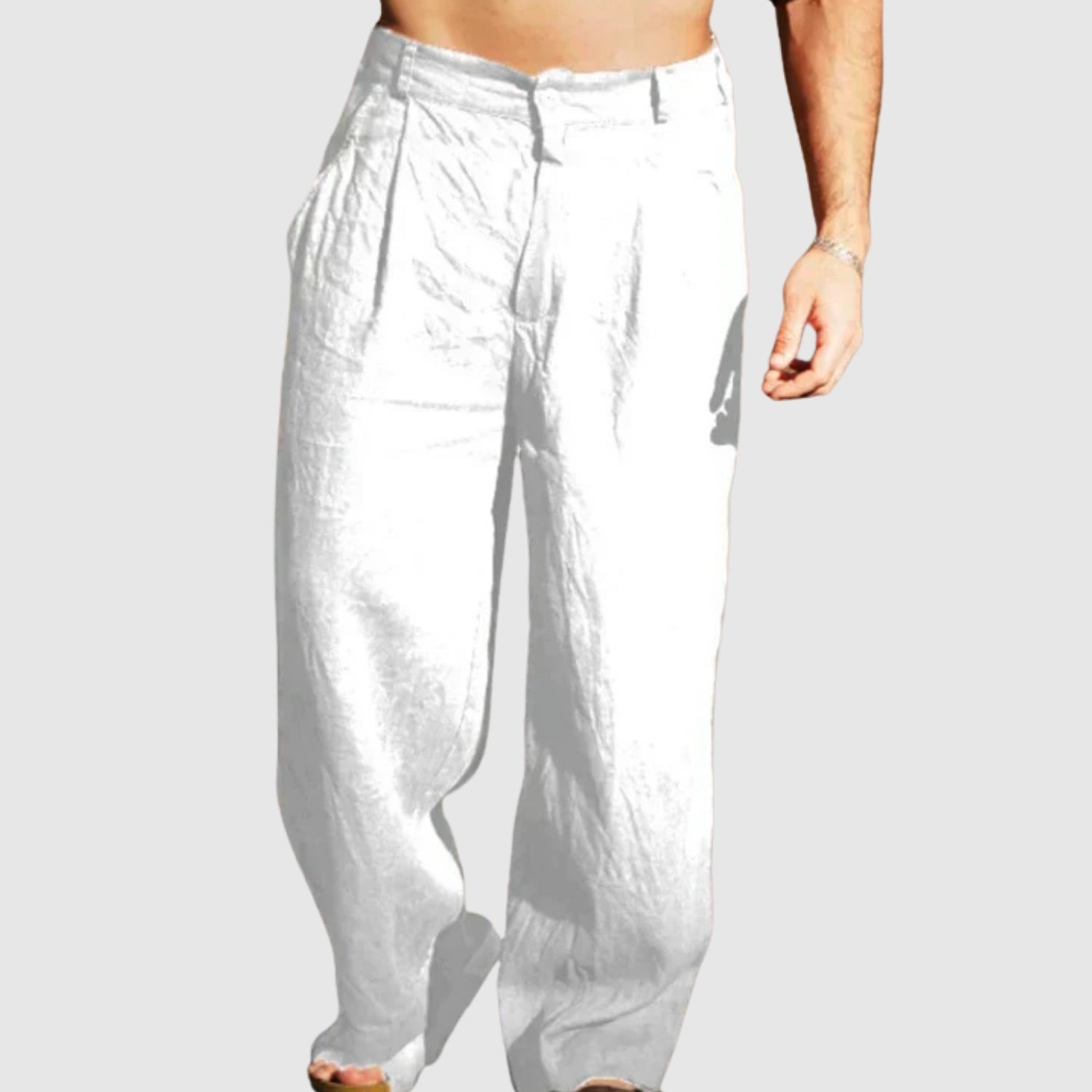 Валентин – Летни ленени панталони с широк крачол