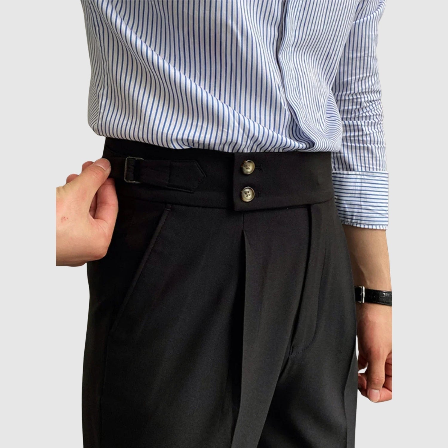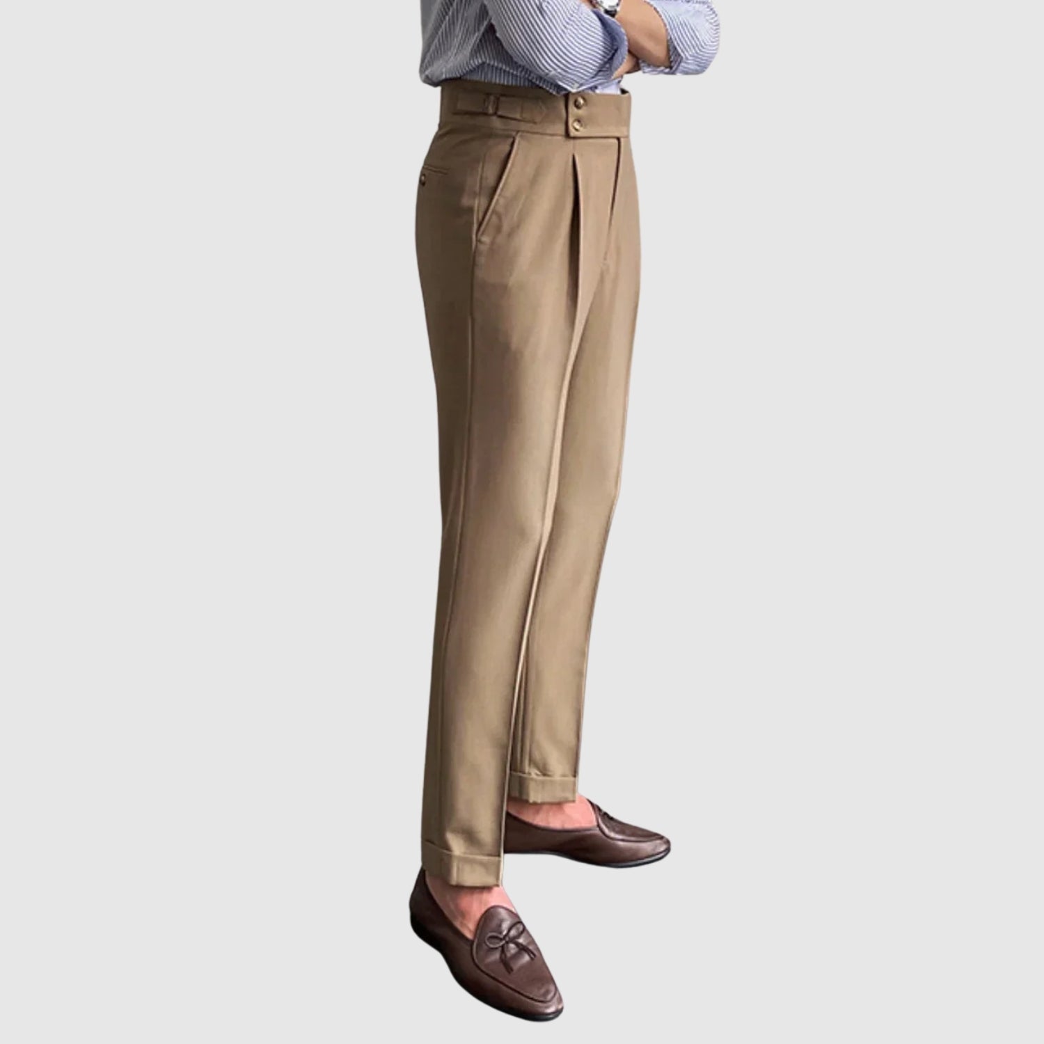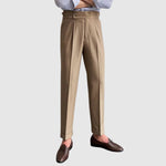 Тези винтидж панталони възвръщат класическата елегантност в рафиниран и съвременен стил. Безупречното кроене подчертава силуета и осигурява комфорт, без да се компрометира с изтънчен вид. Перфектни за формални поводи, работа или когато просто искате да се откроите с класа и стил.