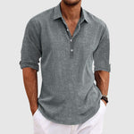 Тази риза комбинира класическата структура с неформална лекота. С чист и универсален дизайн, нейният отворен яка и навити ръкави придават свеж вид, без да губят елегантността. Идеална за топли дни, неформални излети или дори по-официални поводи, когато е стилно комбинирана.