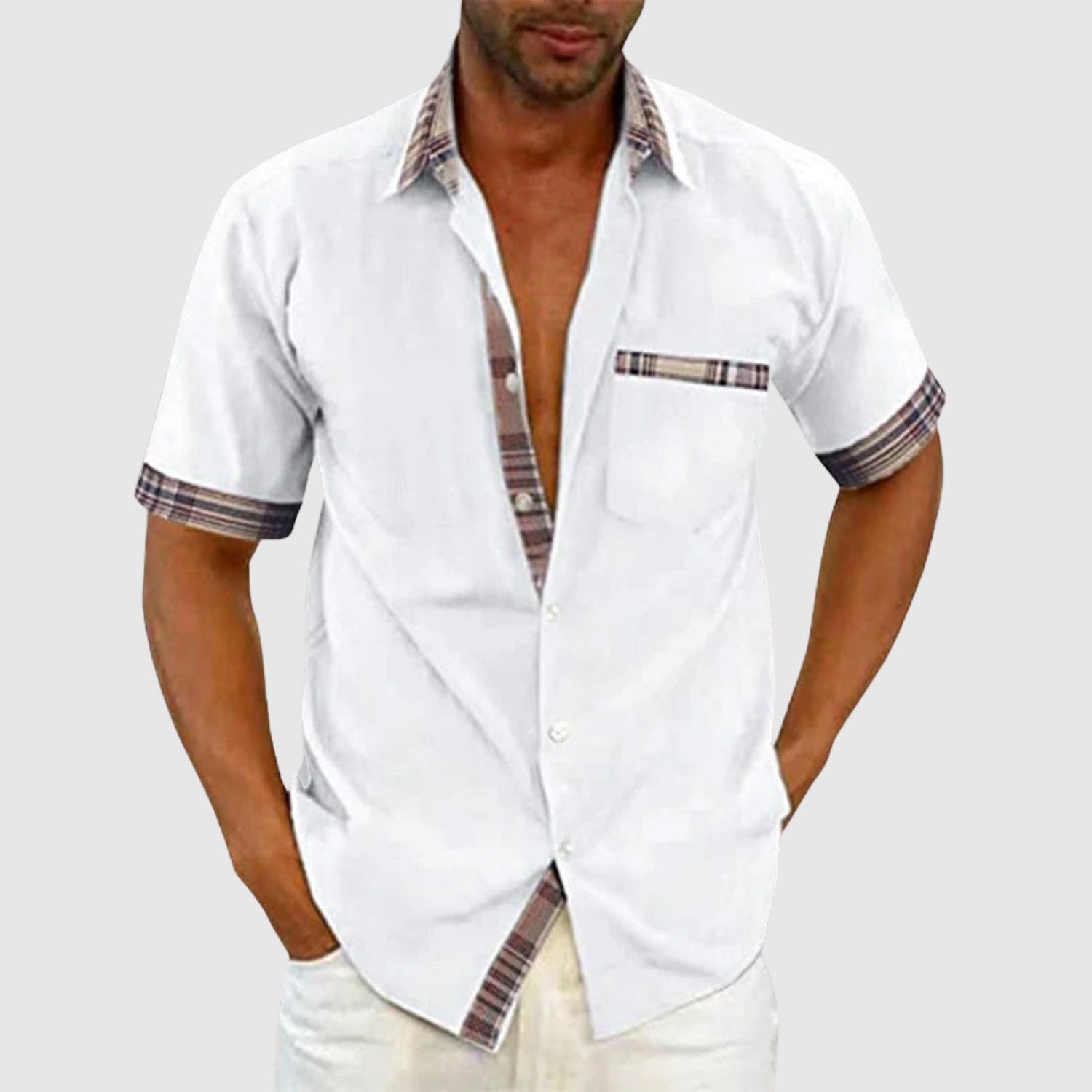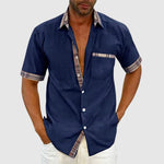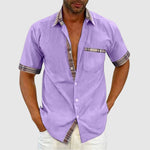 Нашата къс ръкав casual риза е идеалният избор за слънчеви дни, градски разходки или вечери с неформален стил. С деликатни дизайнерски детайли на яката и джоба, тя без усилие съчетава елегантност с пълно удобство. Перфектна за тези, които ценят простотата с отличителен акцент.