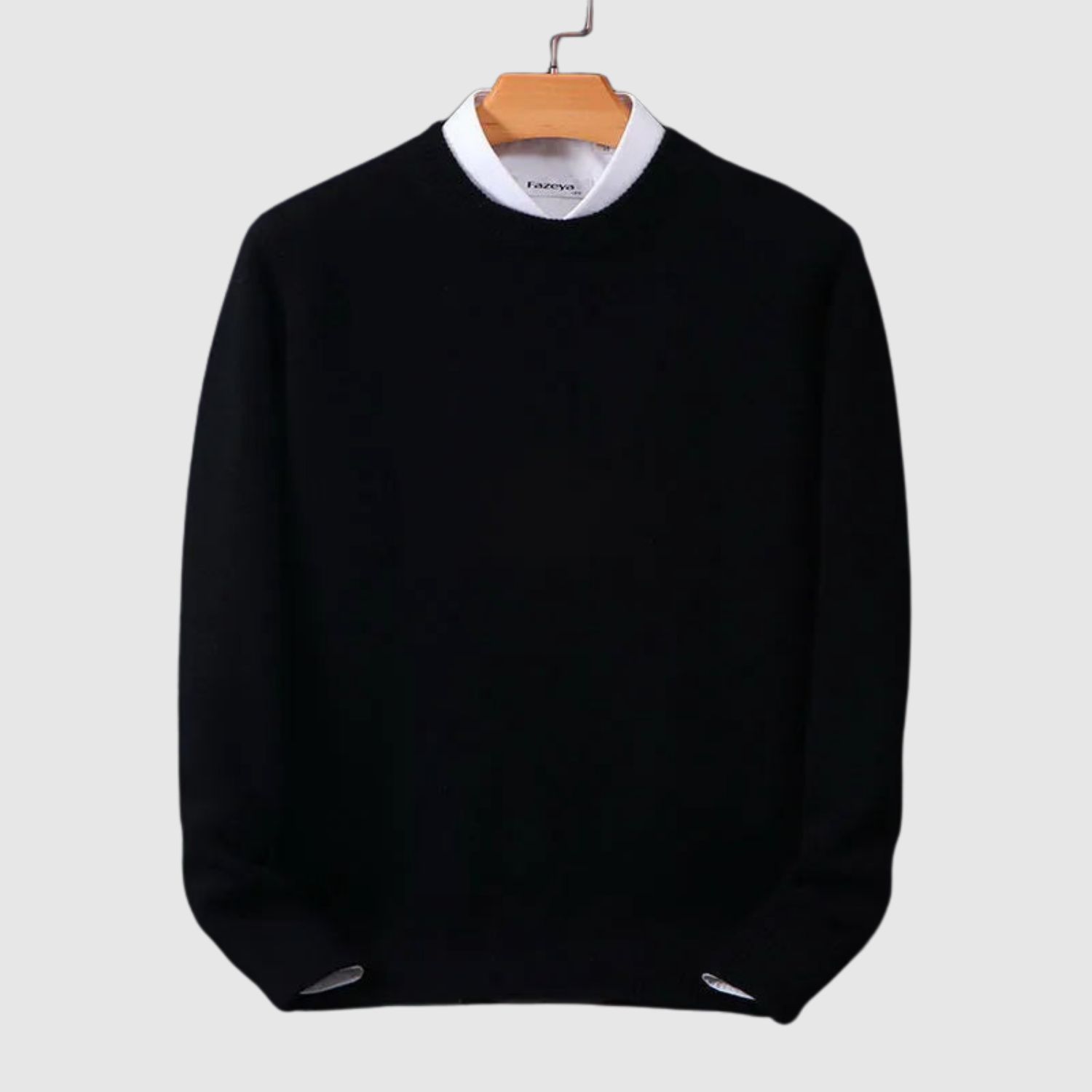 Вечен и стилен пуловер с кръгло деколте, проектиран да осигури както комфорт, така и изискан вид. Леката и мека материя го прави перфектен за носене на слоеве или самостоятелно, както за работа, така и за свободно време.