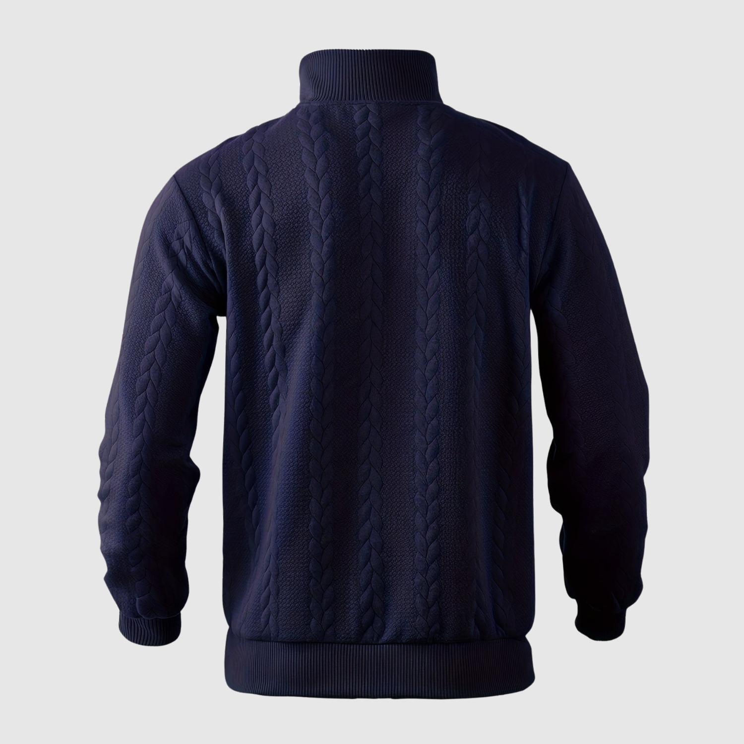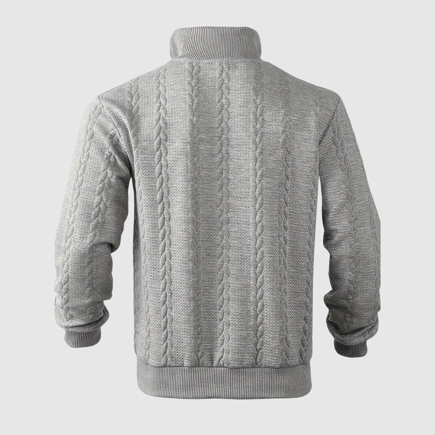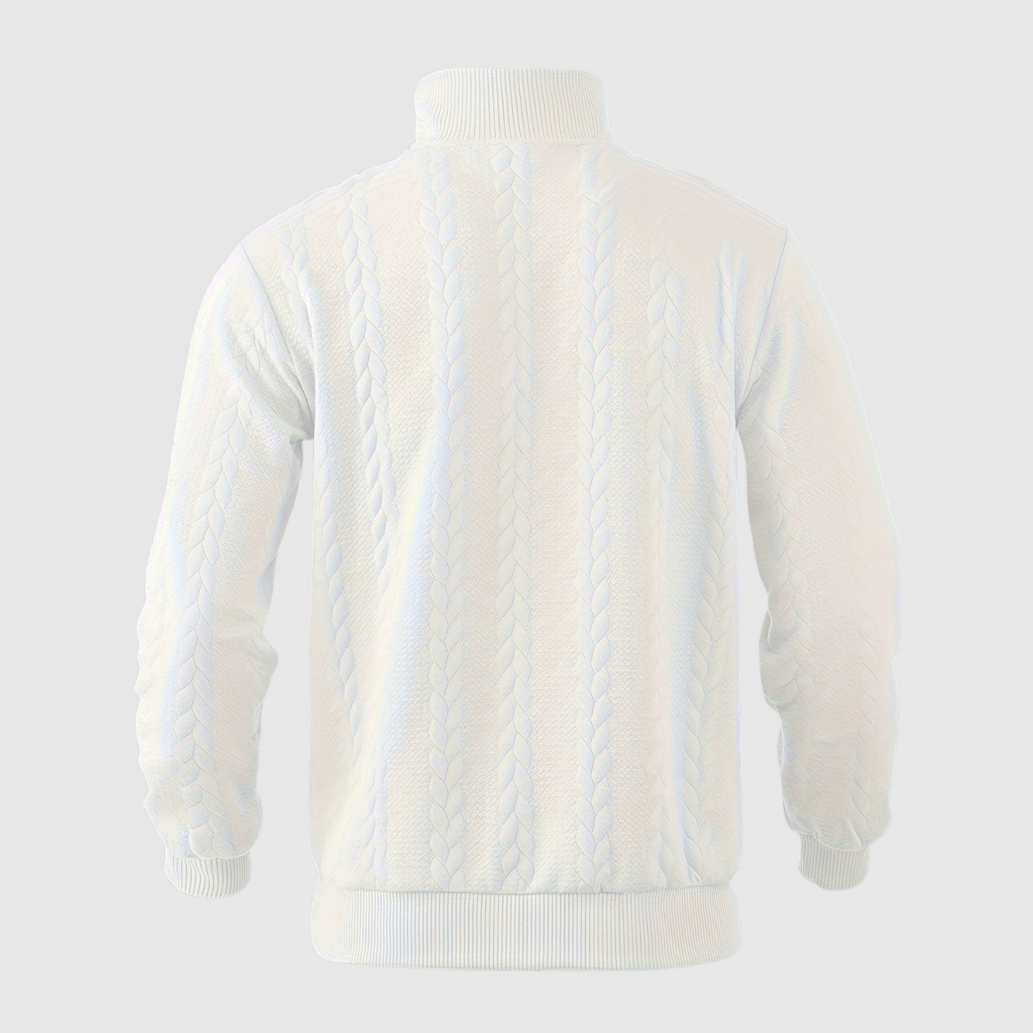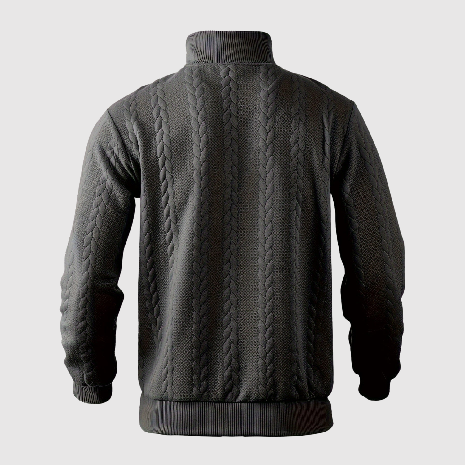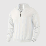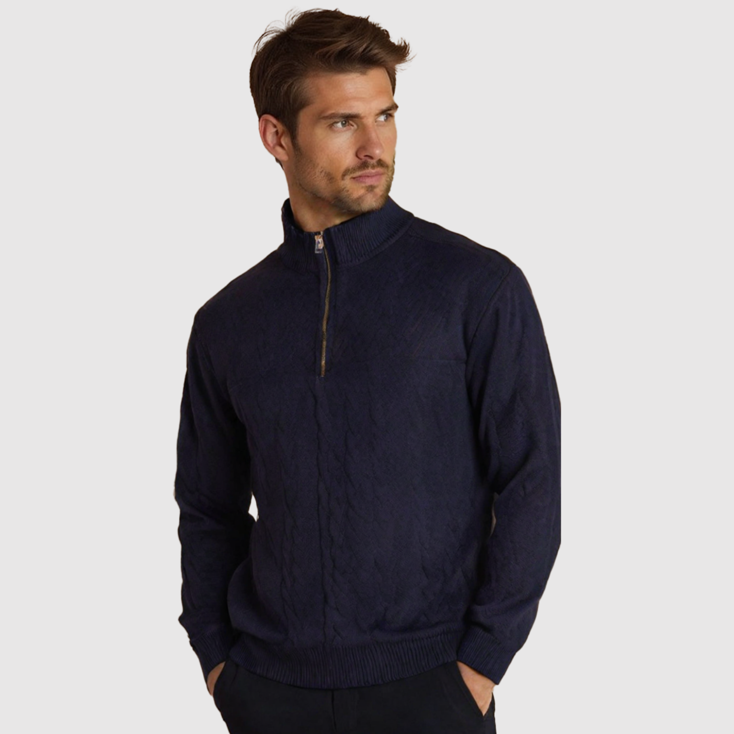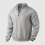 Този полуцип пуловер съчетава вечен дизайн с модерна комфорт. С висок яка и детайл с цип, той предлага гъвкавост както за неформални, така и за по-елегантни визии. Мек, топъл и идеален за есента и зимата.