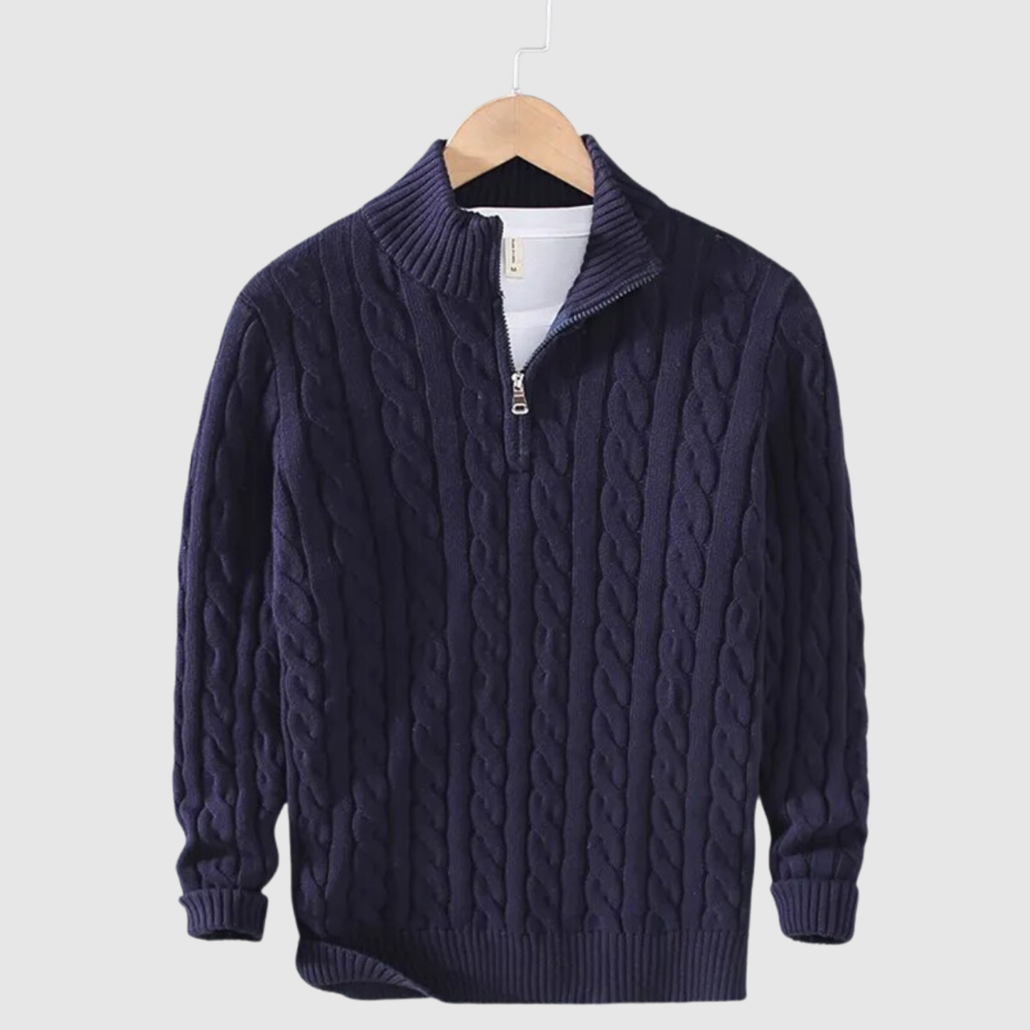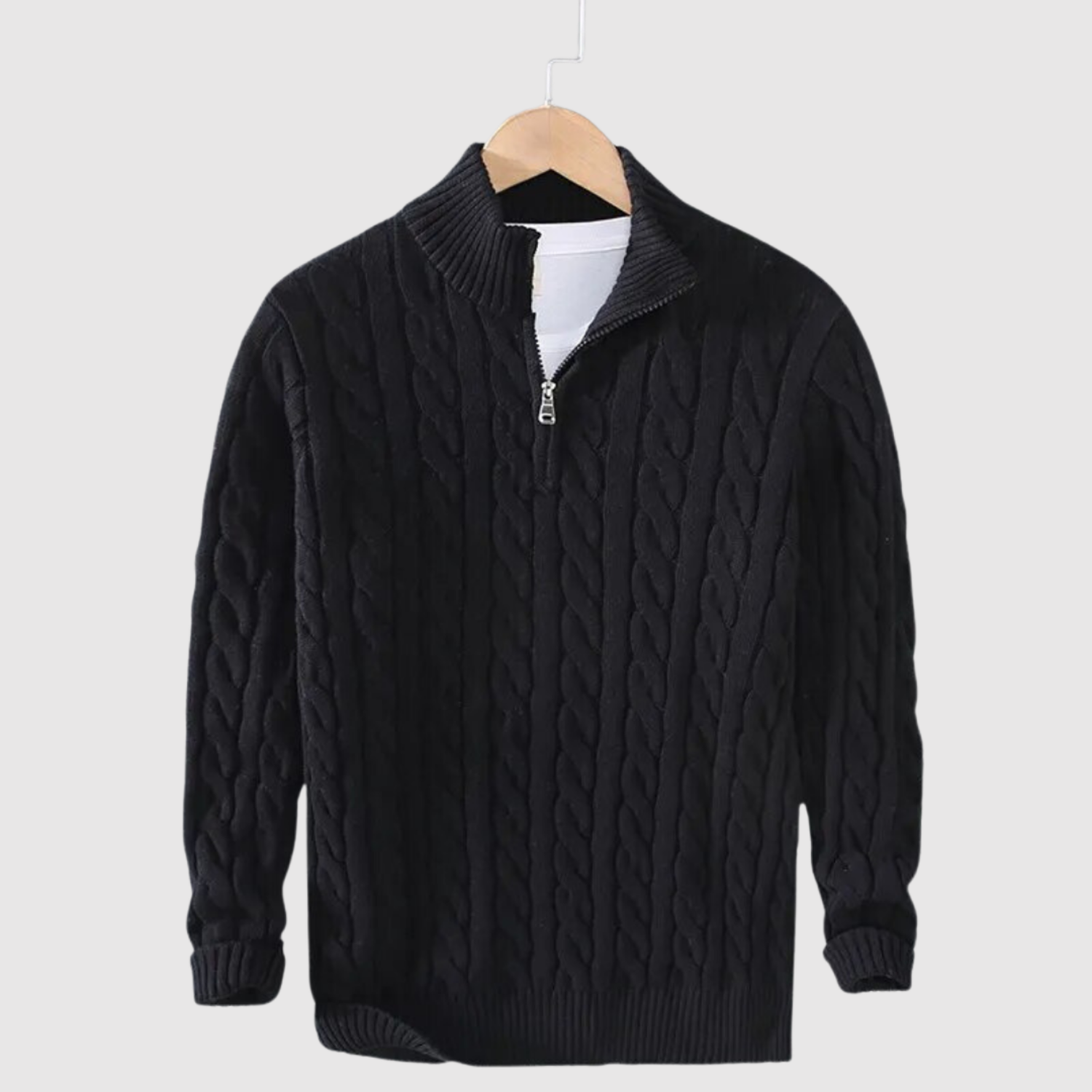 Даниел – Стръкна блуза с кабелна шарка и цип