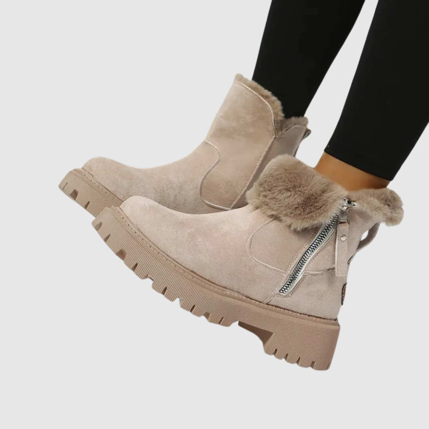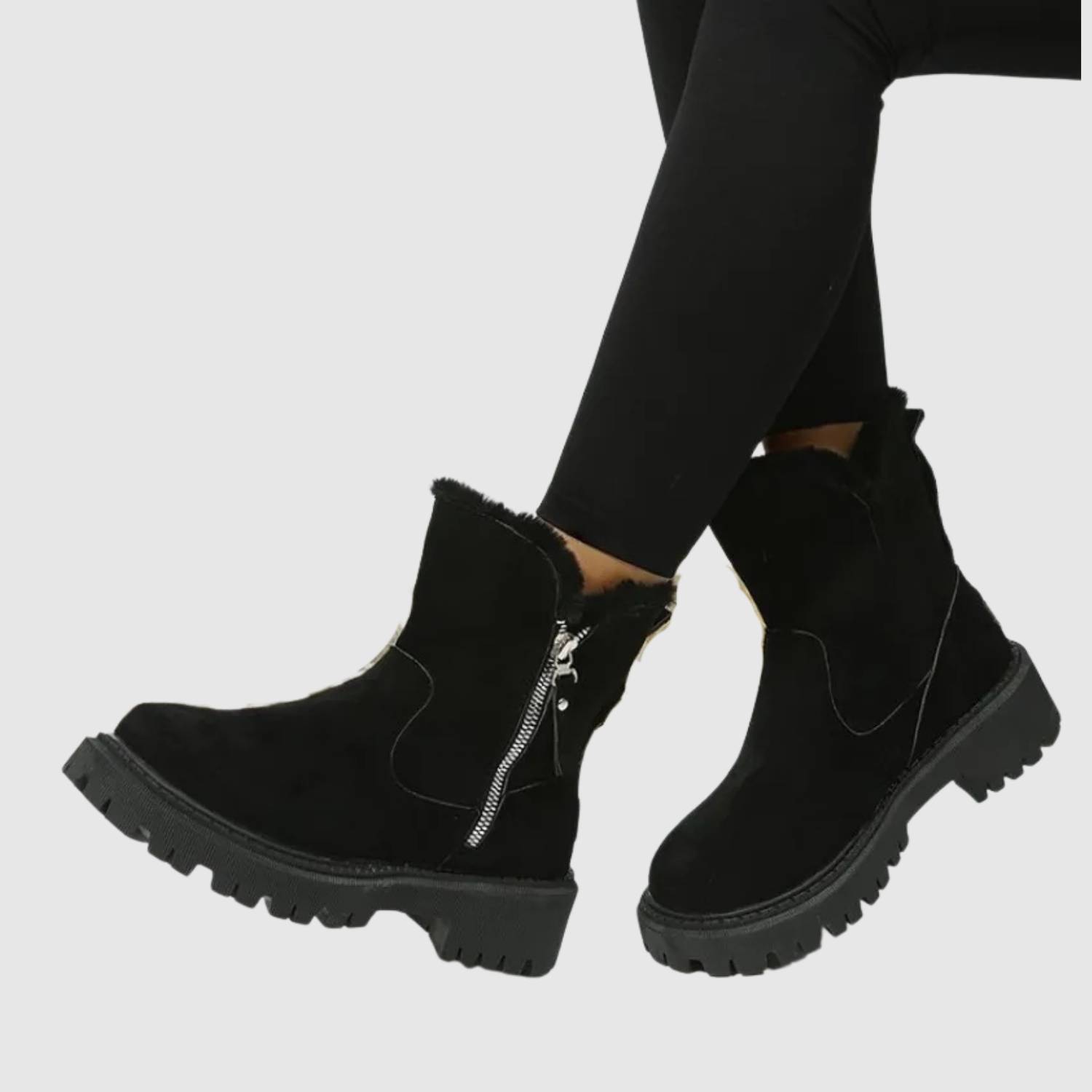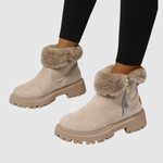 Зимните ботуши Софи са проектирани да поддържат краката ви топли и стилни през цялата зима. Меката пухена подплата предлага луксозно усещане за комфорт, докато солидната противохлъзгаща подметка осигурява стабилност на хлъзгави повърхности. ципът отстрани ги прави лесни за обуване и събуване, а минималистичният им дизайн перфектно се съчетава както с дънки, така и с легинси.