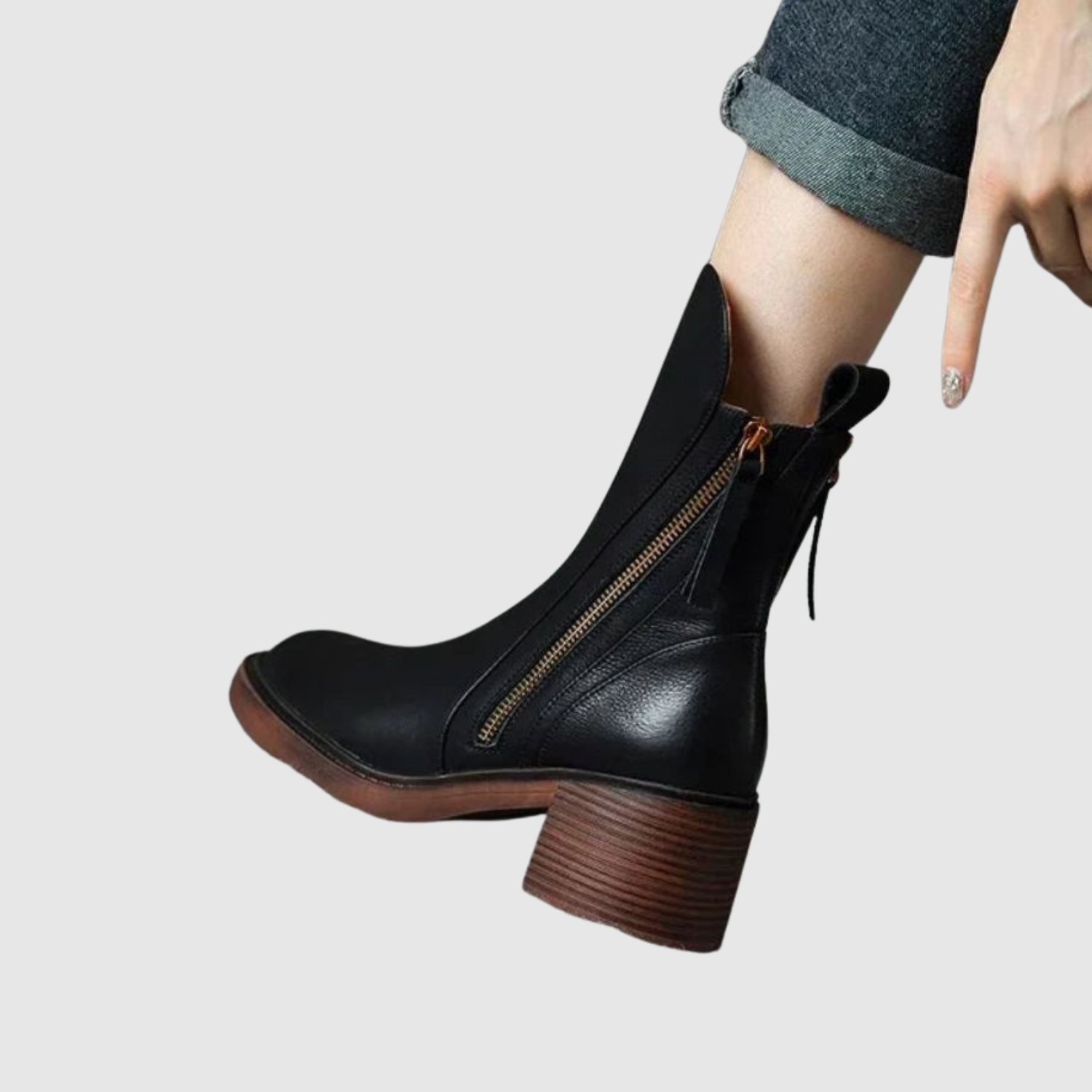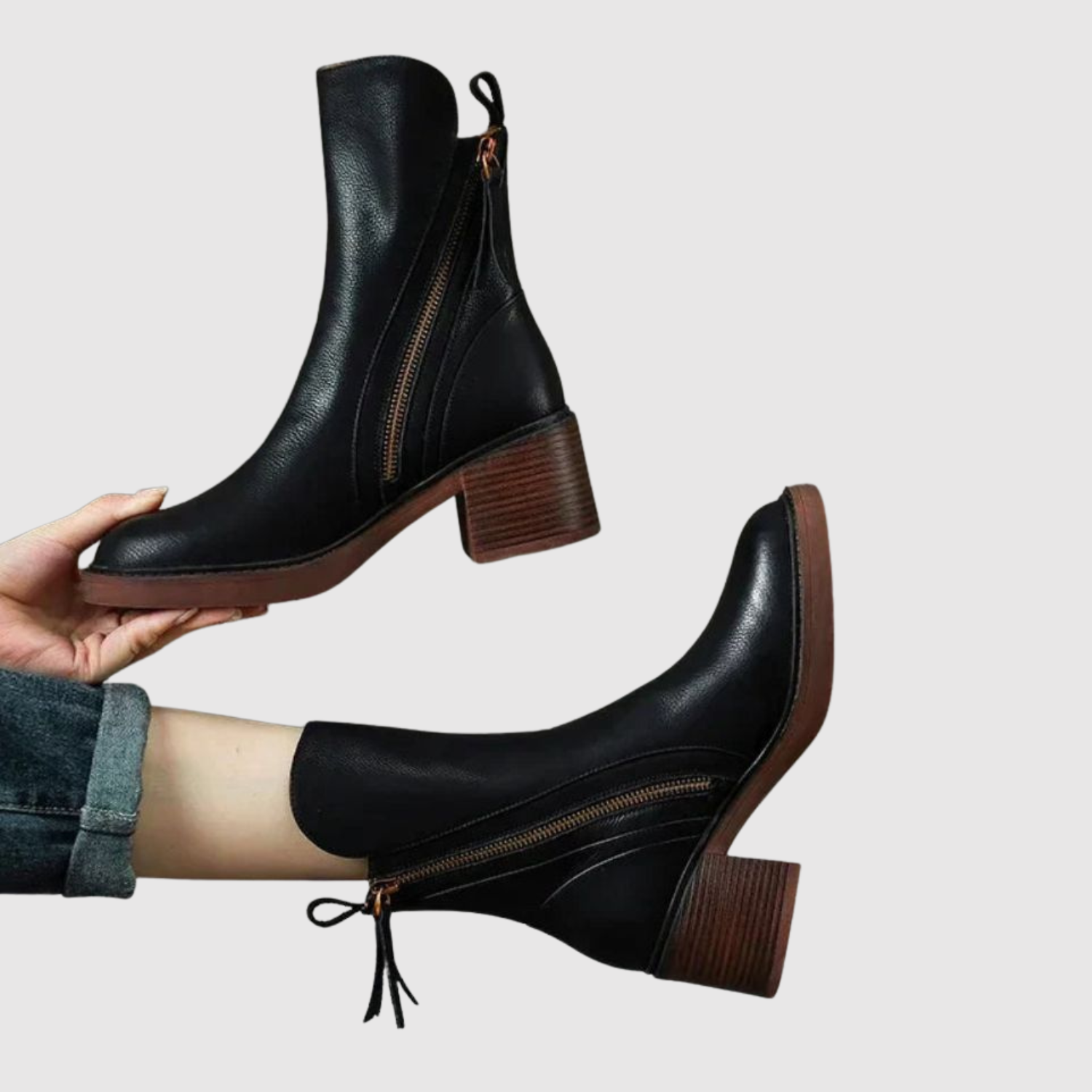 Тези ботуши до глезена комбинират вечен стил с модерно удобство. Чистият дизайн и стабилният ток ги правят перфектни както за ежедневна употреба, така и за вечери навън. Пара ботуши, които завършват всяко облекло с нотка на изтънченост.