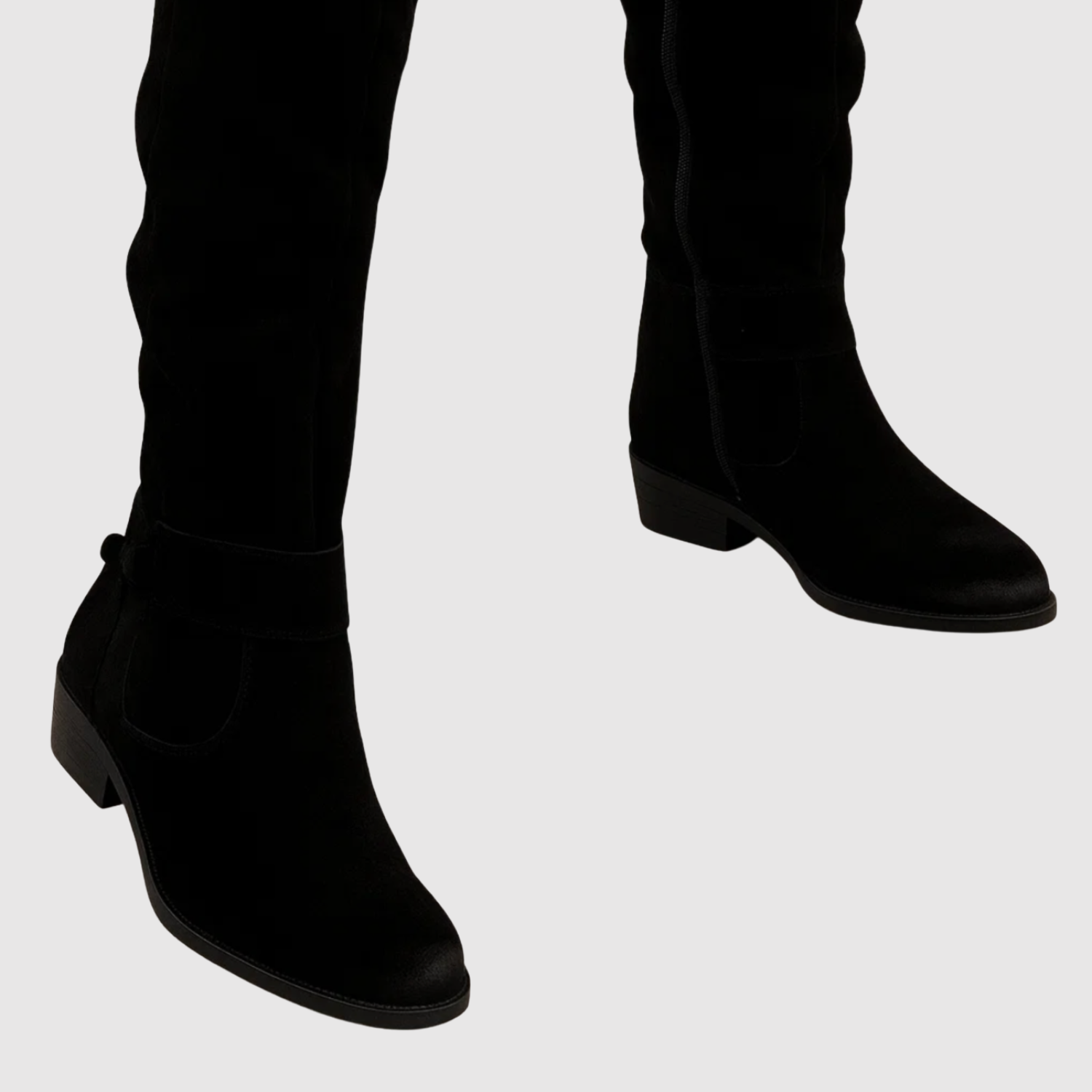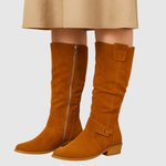 Тези дамски чизми комбинират стил и комфорт в класически дизайн, перфектни за ежедневието и специални поводи. Стабилният ток и меката стелка осигуряват подкрепа през целия ден, докато вечният вид ги прави лесни за съчетаване с всяко облекло.