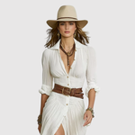 Тази въздушна макси рокля комбинира бохемски вдъхновен кройка с вечна женственост. Лекото платно пада красиво около тялото, докато коланът в талията подчертава фигурата по ласкателен начин. Перфектна за летни дни или небрежни вечери.