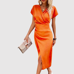 Вечна рокля с фигурална кройка, която подчертава силуета по най-красивия начин. V-образното деколте и елегантният силует я правят идеална както за ежедневна употреба, така и за празнични поводи. Материята е гъвкава и удобна, така че да можеш да се движиш свободно през целия ден.
