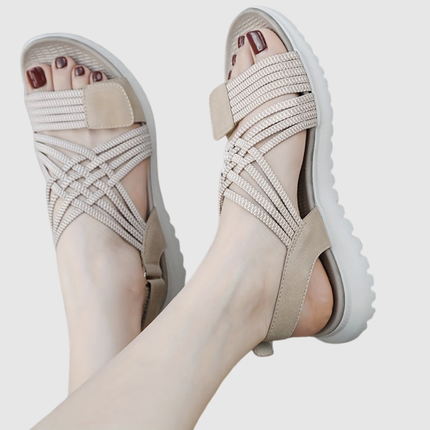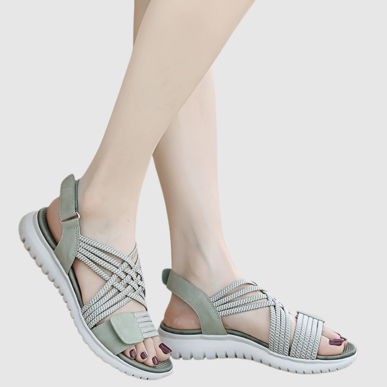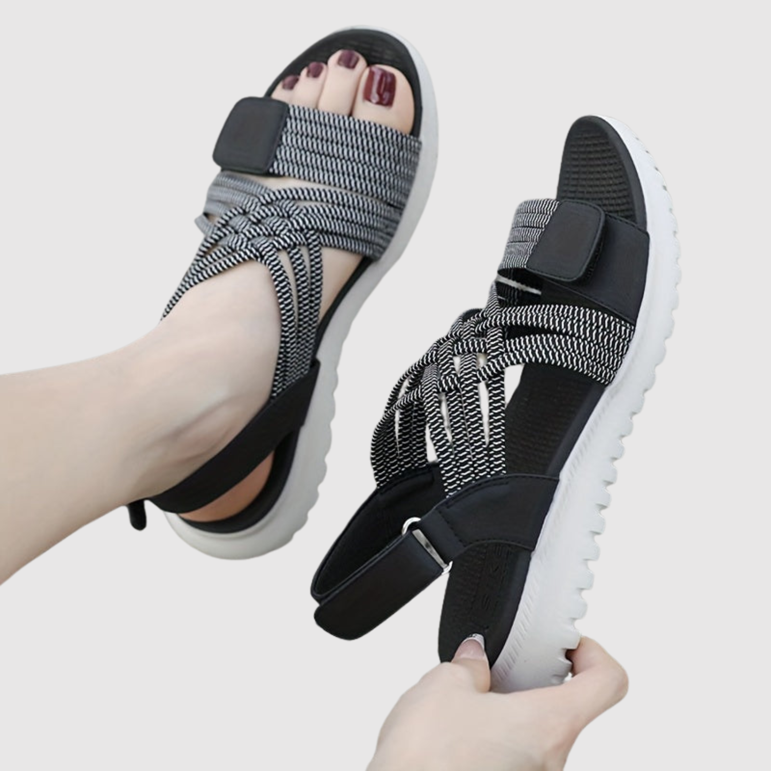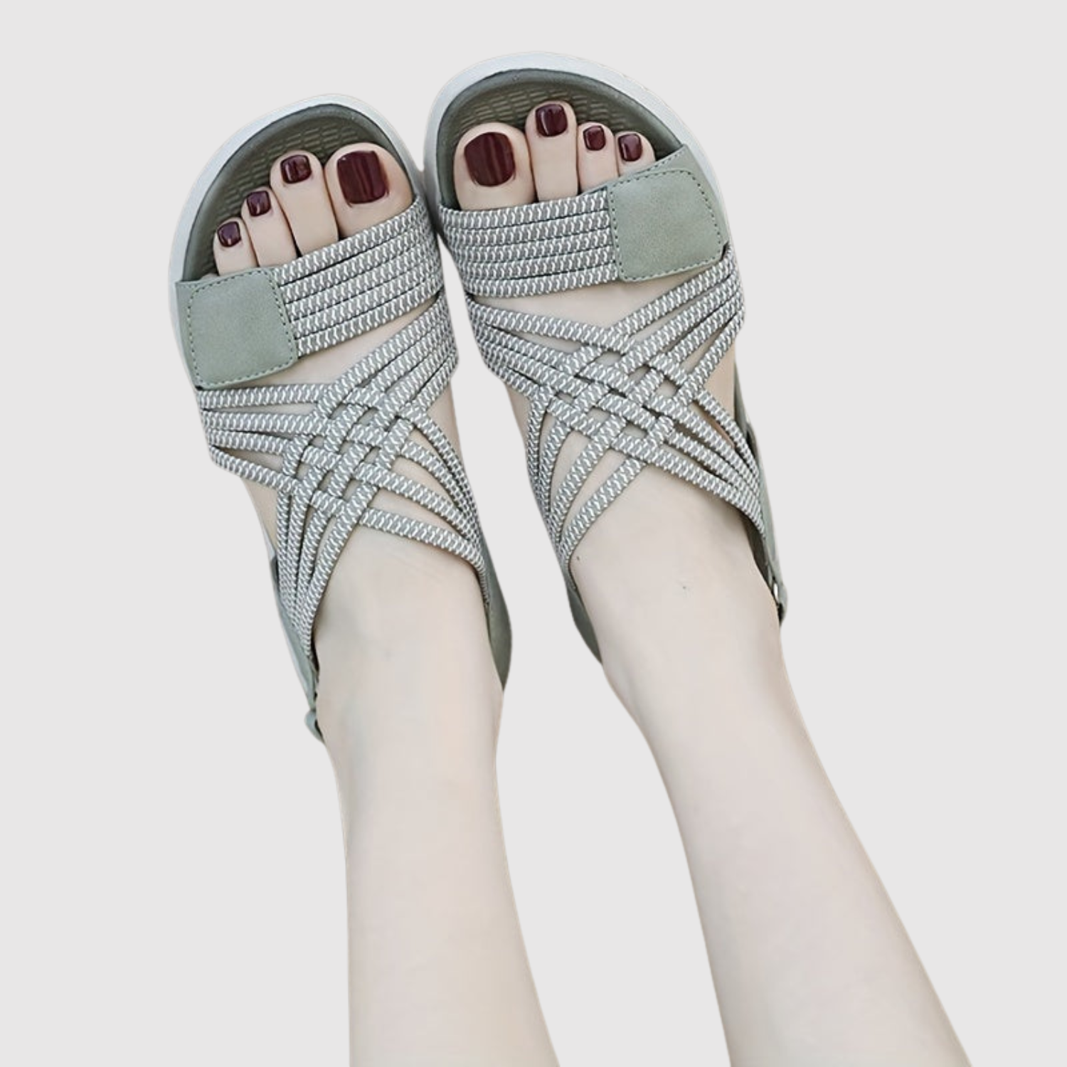 Тези сандали съчетават модерен дизайн с максимална ергономия за вашите крака. Ортопедичната стелка помага за намаляване на натиска при ходене, докато регулируемите ремъци осигуряват стабилно и удобно прилягане. Леката и нехлъзгаща се подметка предлага стабилност и безопасност при всяка стъпка, което ги прави перфектни за ежедневно носене, дълги разходки или ваканции.