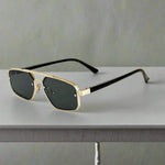 Тези ректангуларни слънчеви очила имат елегантен и модерен дизайн, който съчетава лек метален ръб с тонирани лещи в различни нюанси. Перфектни за изтънчен ежедневен стил, но също така и за по-формални поводи. Удобни и вечни, те подхождат на всяка гардероб.