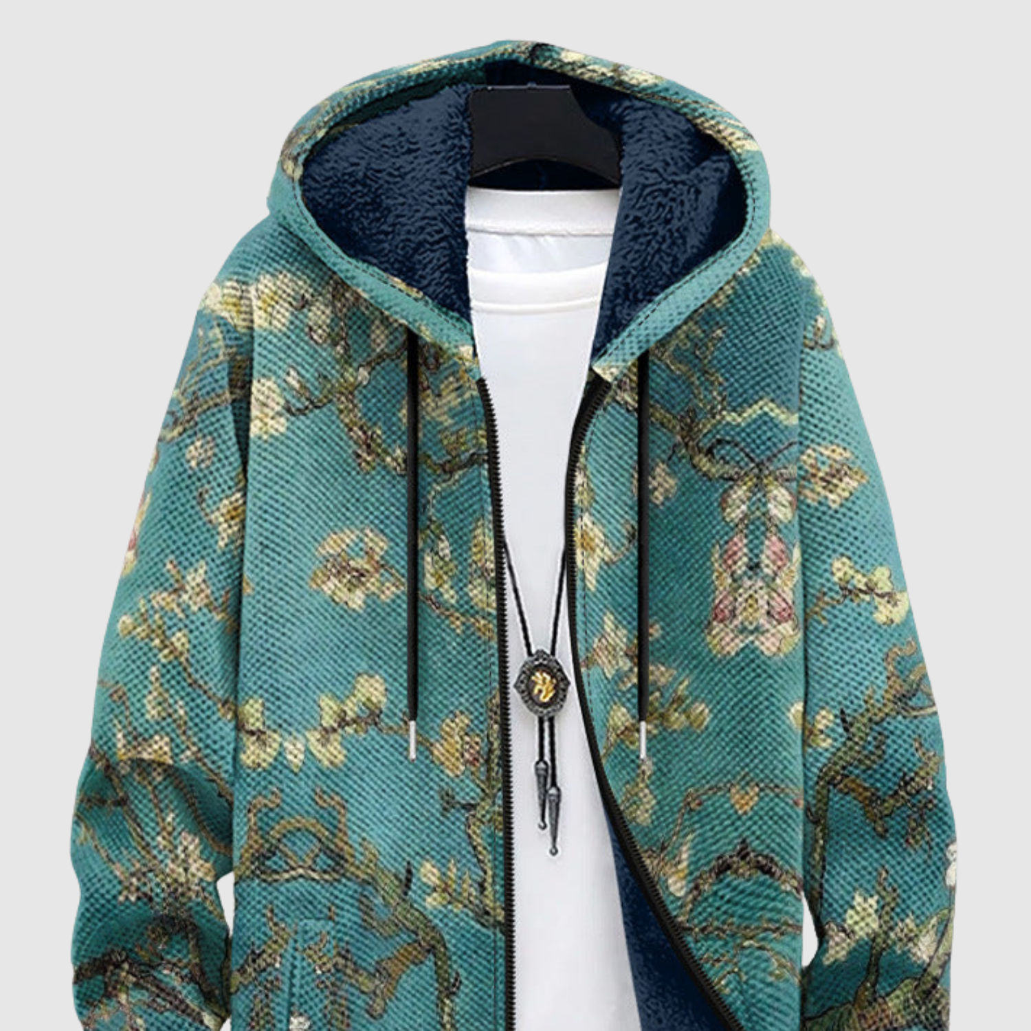 Този суичър е украсен с деликатен цветен принт в спокойни зелени и бежови тонове. Меката текстура и топлата подплата го правят идеален за ежедневна употреба, докато винтидж вдъхновеното му设计 придава елегантен и хармоничен вид.