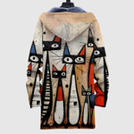 Тази худи комбинира геометрични форми и елегантни котешки мотиви в стилен дизайн. Топлите златисти и бежови тонове придават изискан вид, докато мекото материал осигурява максимален комфорт.