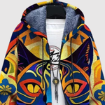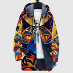 Тази худи комбинира ярки цветове и креативен котешки мотив в изразителен дизайн. Тя е както мека, така и топла, и изпълнена с личност – перфектна за теб, който обичаш уникални детайли и щипка фантазия.