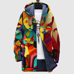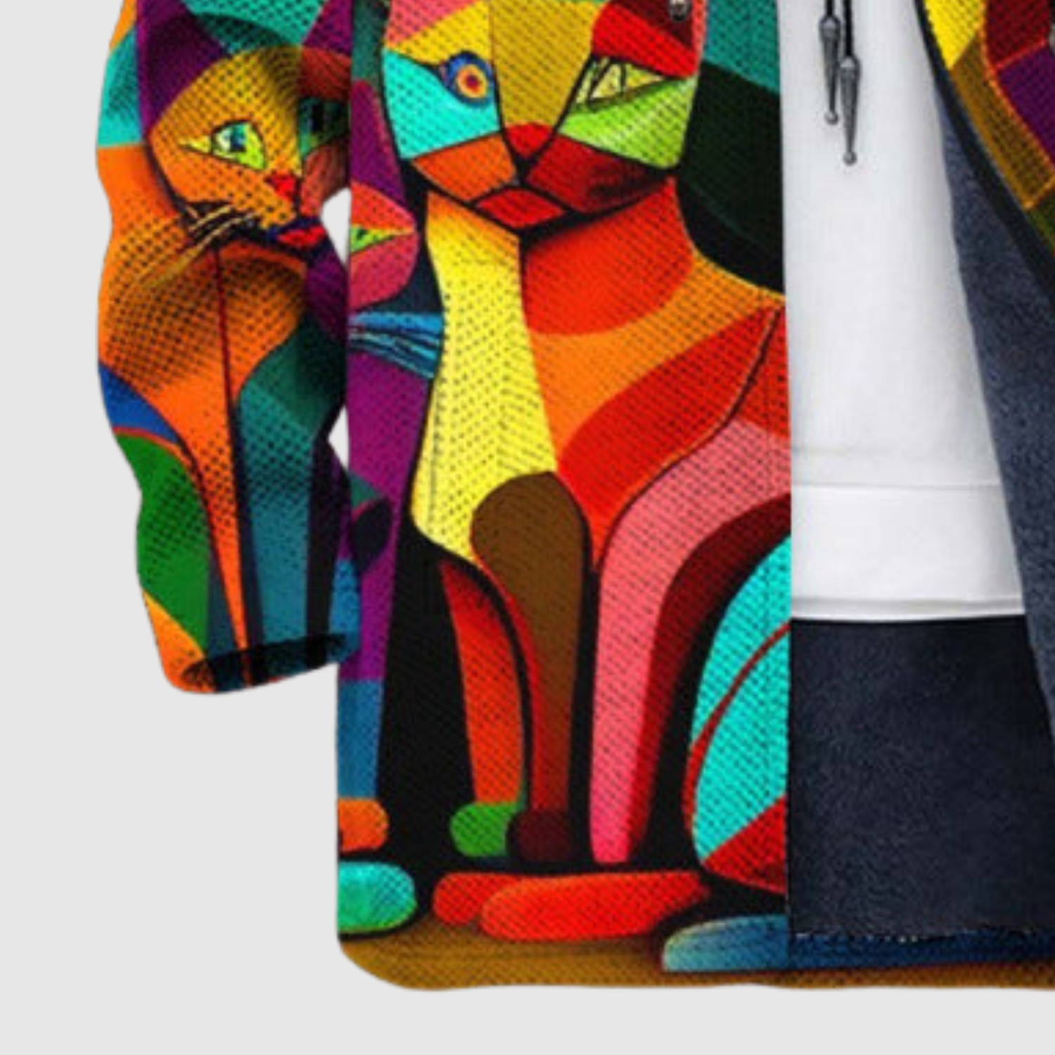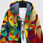 Тази худи комбинира игриви котешки мотиви с живи цветове и артистично изразяване. Тя е перфектна за теб, който желае уникален вид с много личност – мека, топла и пълна с радост.