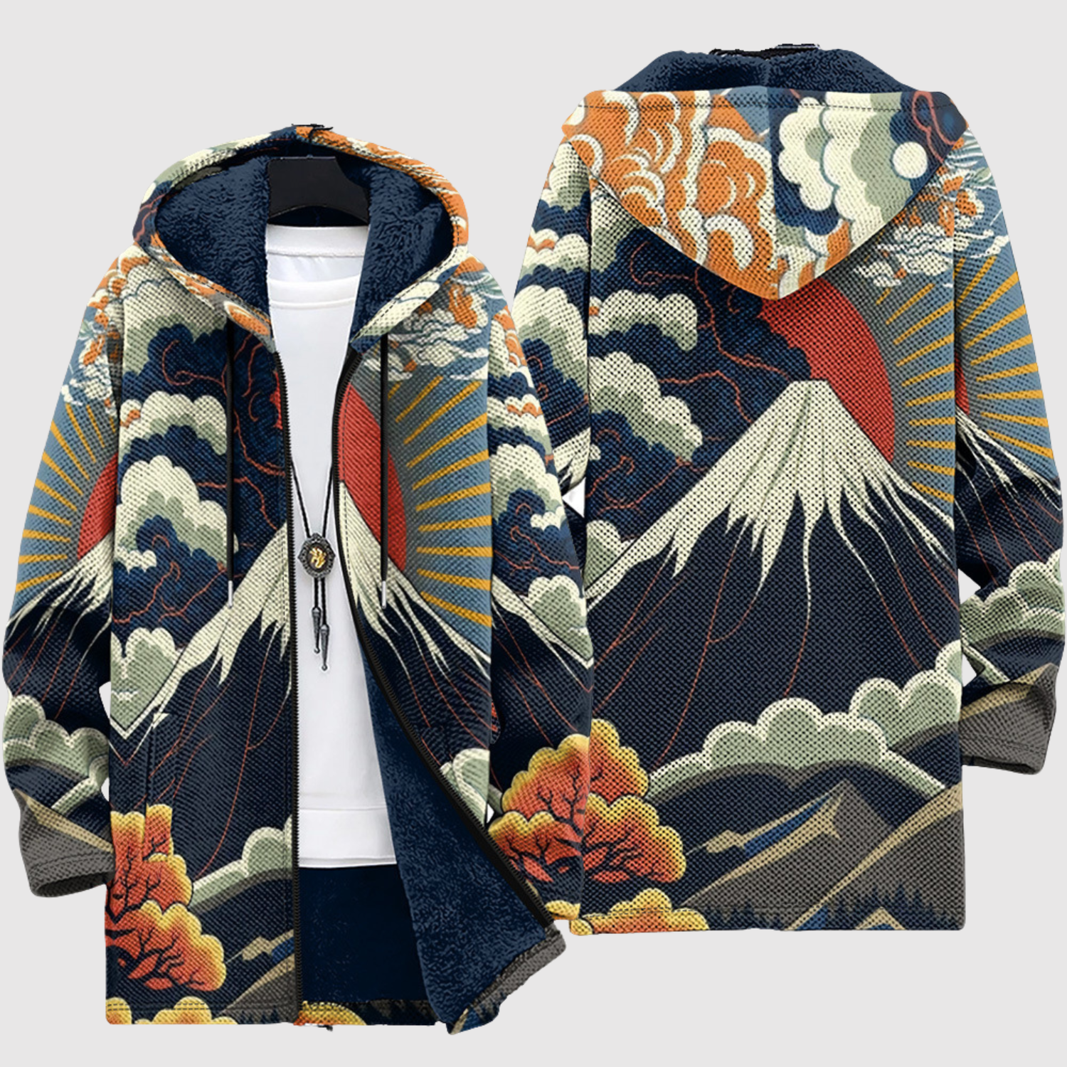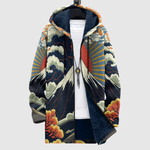 Тази худи е вдъхновена от традиционни японски пейзажи и комбинира вълни, планини и цветя в завладяващ дизайн. Топлата подплата и богатите цветове я правят едновременно елегантна и релаксираща – истинско изявление за стил.