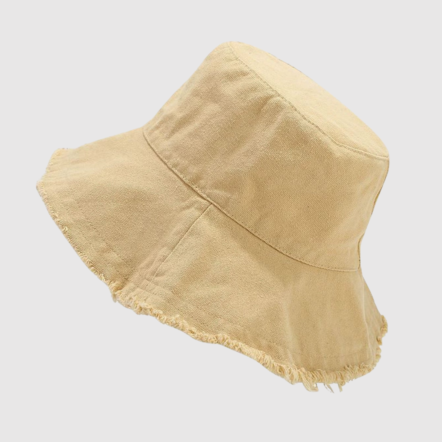 Модерна шапка с широка периферия с неравни, дизайнерски детайли, които придават неофициален и модерен вид. Леката конструкция я прави удобна за носене в горещи дни, а простият дизайн я прави лесна за съчетаване с различни аутфити. Идеална за лято, фестивали и свободно време.
