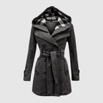 Това дълго палто с качулка комбинира класически стил и функционалност. С колана в талията, мекото подплънка и модерния дизайн, то е перфектно за да ви държи топло и стилно в студените дни. Идеално както за ежедневна употреба, така и за по-елегантни поводи.