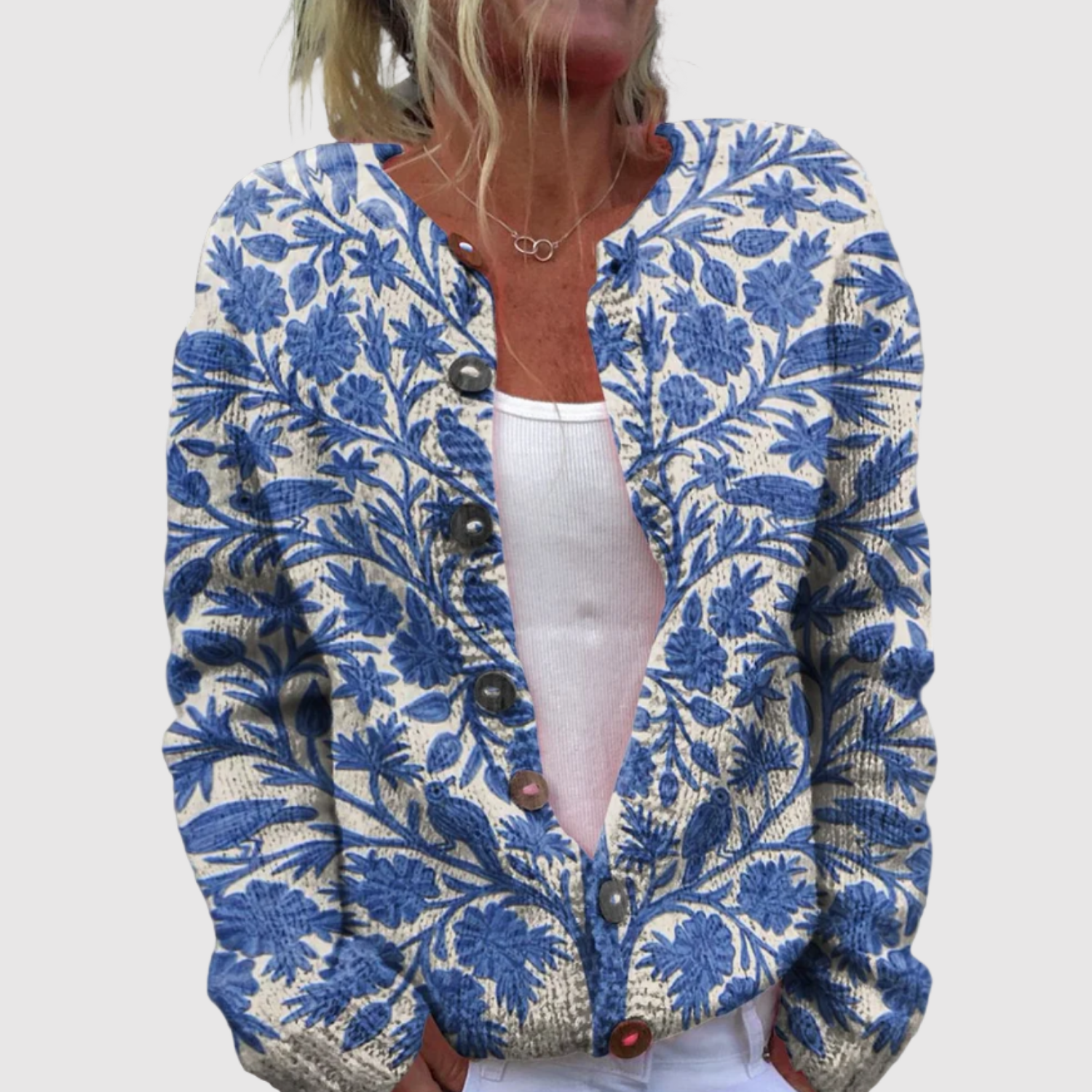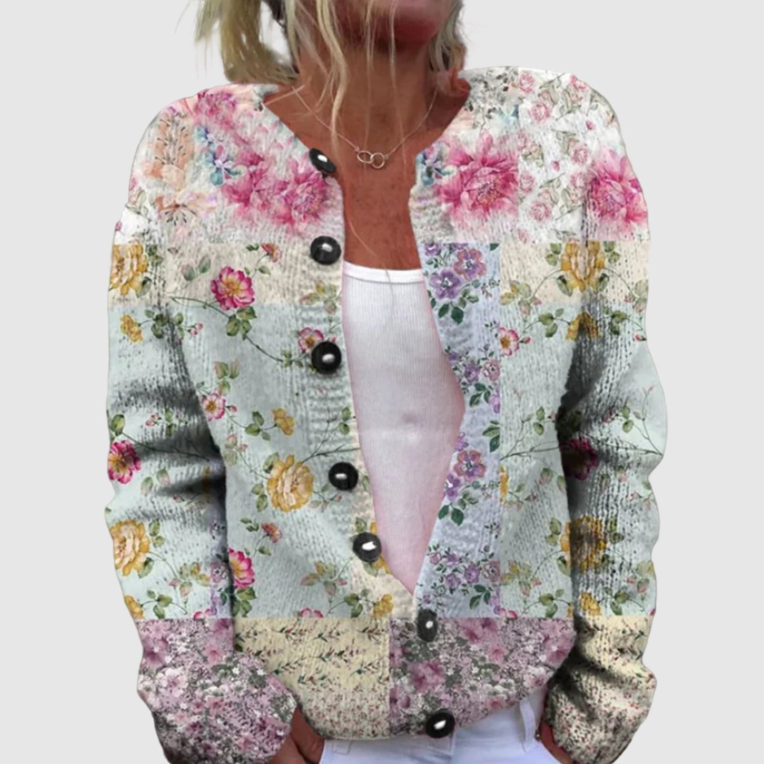Елена – Кардиган с цветен принт и копчета