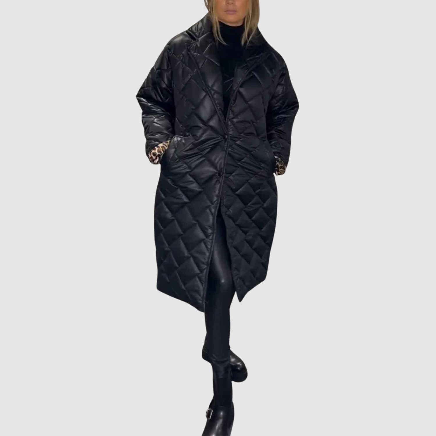 Тази обратима подплатена шуба ви дава два стилни вида в една. Перфектна за студени дни, когато искате комфорт и модерен вид.