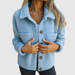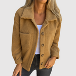 Дръж се топло и комфортно в това модерно теди яке с меко и уютно материал. Якето има големи предни джобове, класическа яка и копчета, което придава както практичен, така и неформален вид. Перфектно за хладни дни, когато искаш да комбинираш комфорт и стил.