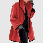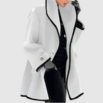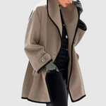 Тази oversize дамска палто комбинира комфорт и елегантност в един вечен дизайн. Ярките черни контрастни ръбове придават модерен вид, докато свободната кройка осигурява свобода на движение и небрежен вид. Перфектна за ежедневна употреба и по-елегантни поводи.
