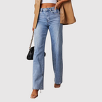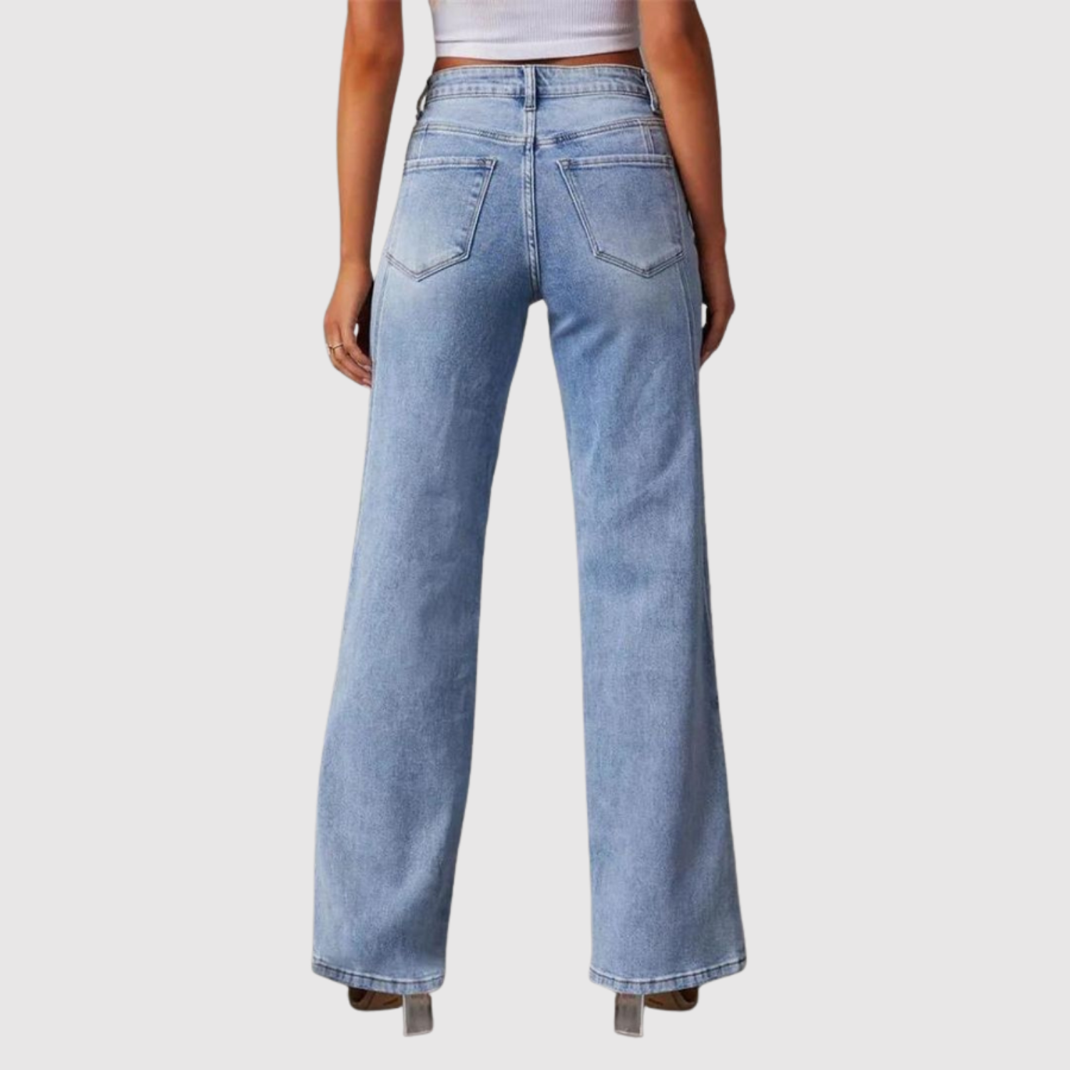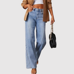 Тези дънки с широк крачол предлагат небрежен, но изискан стил. С високата си талия и свободен силует, те съчетават комфорт и мода по най-добрия начин. Идеален избор както за ежедневна употреба, така и за по-елегантни аутфити.