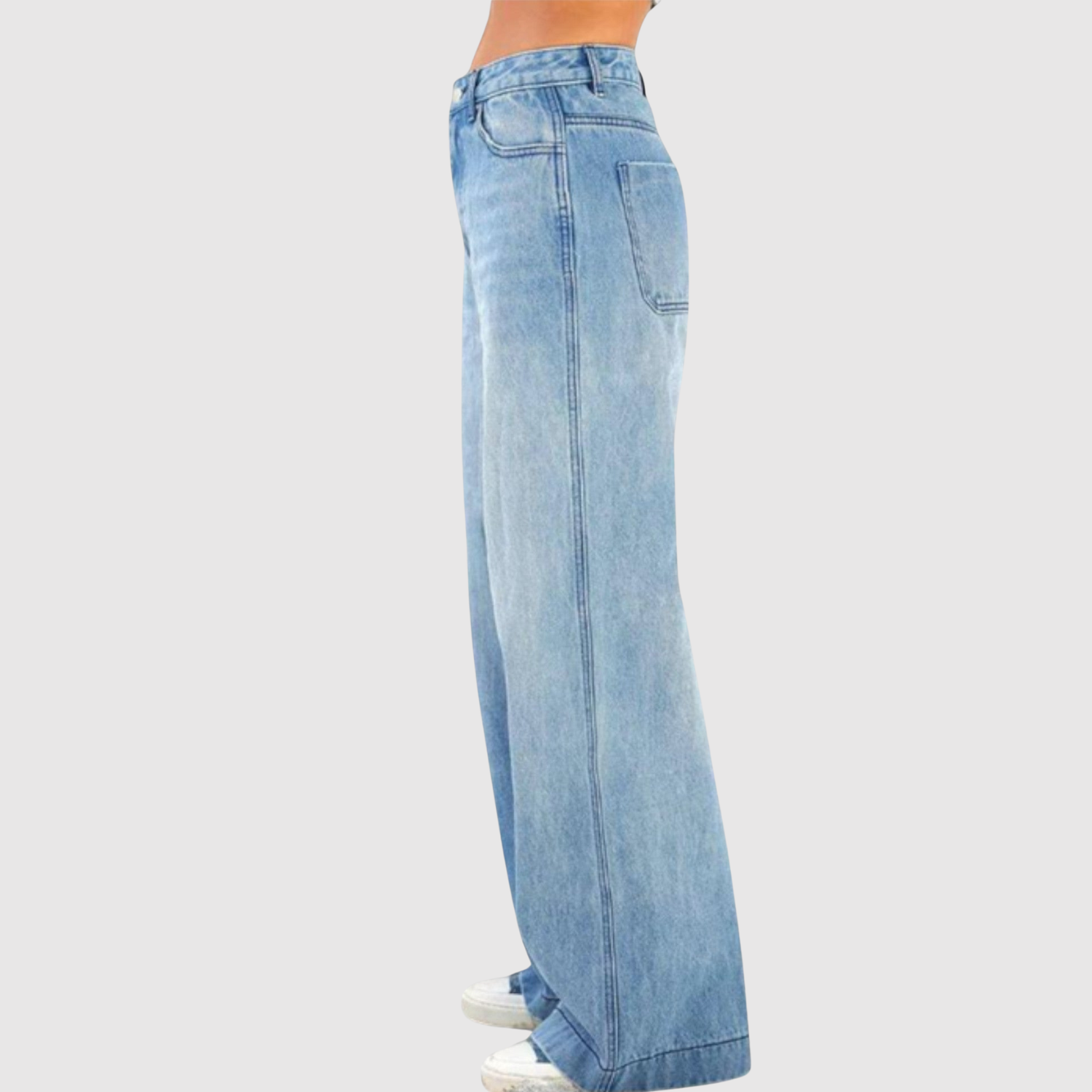 Придайте на гардероба си модерен и неформален вид с тези дънки с широка кройка. Техният свободен силует и удобен материал ги правят идеалният избор за градски вид с индивидуалност. Перфектни за комбиниране със спортни обувки или токчета – тези панталони ще станат вашата нова универсална основна част.