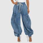 Тези багги дънки предлагат неформален и модерен вид. Връзките добавят уникален акцент, докато кройката остава удобна и практична.