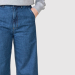 Тези широки дънкови панталони съчетават комфорт и елегантност в прост дизайн. Тъмносиният стоун уош придава изискано усещане, перфектно за ежедневна употреба и по-полирани визии. Създадени за съвременния гардероб с акцент върху качеството и лесното стилизиране.