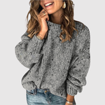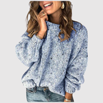 Този обемен пуловер предлага Relaxed и модерен вид, идеален за хладни дни. Меката и дебела плетка осигурява комфорт през целия ден, докато дизайна му го прави лесен за стилизиране с дънки и поли.