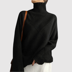Този пуловер комбинира комфорт с впечатляващ геометричен модел. Високата яка осигурява топлина и стил, докато мекото материал го прави удобен за носене през целия ден. Перфектен за модерен и изискан вид.