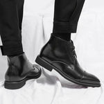 Тези кожени ботуши комбинират класическа елегантност с практична функционалност. Гладката повърхност и връзките придават изискан вид, докато здравата подметка осигурява стабилност и комфорт през целия ден. Универсален избор както за бизнес, така и за неформални облекла.