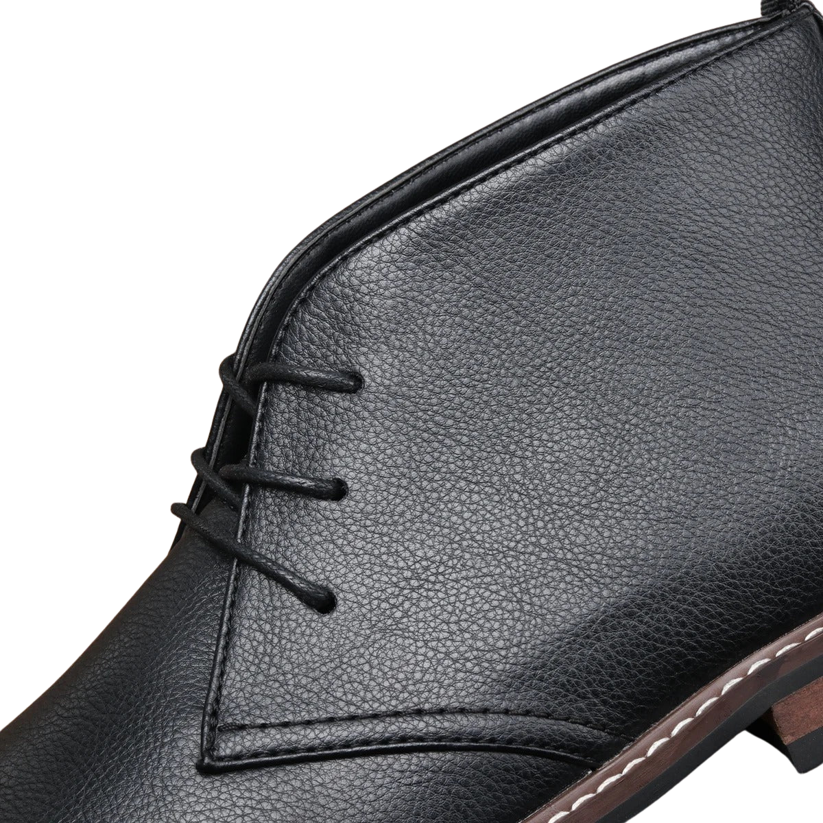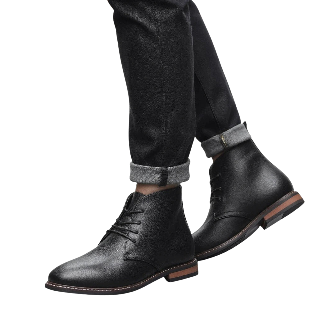 Тези чука обувки от черна кожа съчетават класическа елегантност с модерна функционалност. Леката подметка и простият дизайн ги правят перфектни както за ежедневно носене, така и за по-официални поводи. Вечен избор, който никога не излиза от мода.