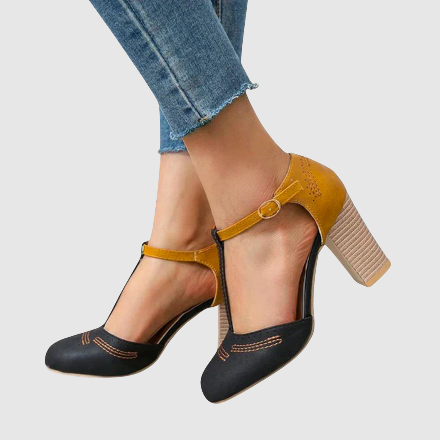 Тези обувки съчетават класическа елегантност с модерно удобство. Регулируемият ремък около глезена осигурява сигурно прилягане, докато стабилната блокова пета гарантира баланс и комфорт при ходене. С прост, но изискан вид, те са идеални както за всекидневието, така и за специални поводи.