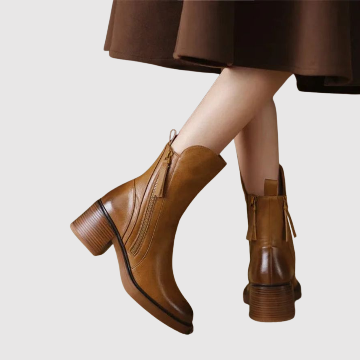 Тези ботуши до глезена комбинират вечен стил с модерно удобство. Чистият дизайн и стабилният ток ги правят перфектни както за ежедневна употреба, така и за вечери навън. Пара ботуши, които завършват всяко облекло с нотка на изтънченост.