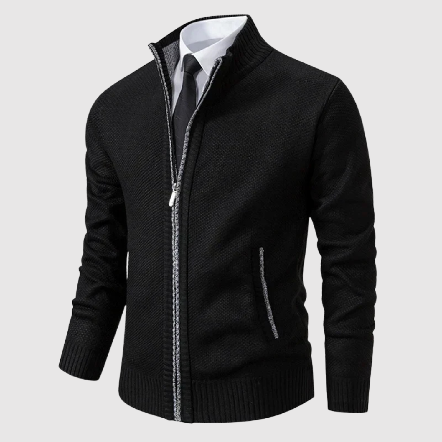 С практични странични джобове и висок яка за допълнителна топлина, този кардиган е едновременно функционален и стилен. Независимо дали сте на път за офиса или искате да създадете неформален, но изискан вид за уикенда, този артикул се адаптира без усилие към всякакъв повод. Открийте безвременен дизайн и съвременен комфорт във всяка подробност.