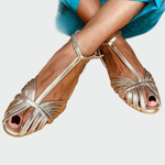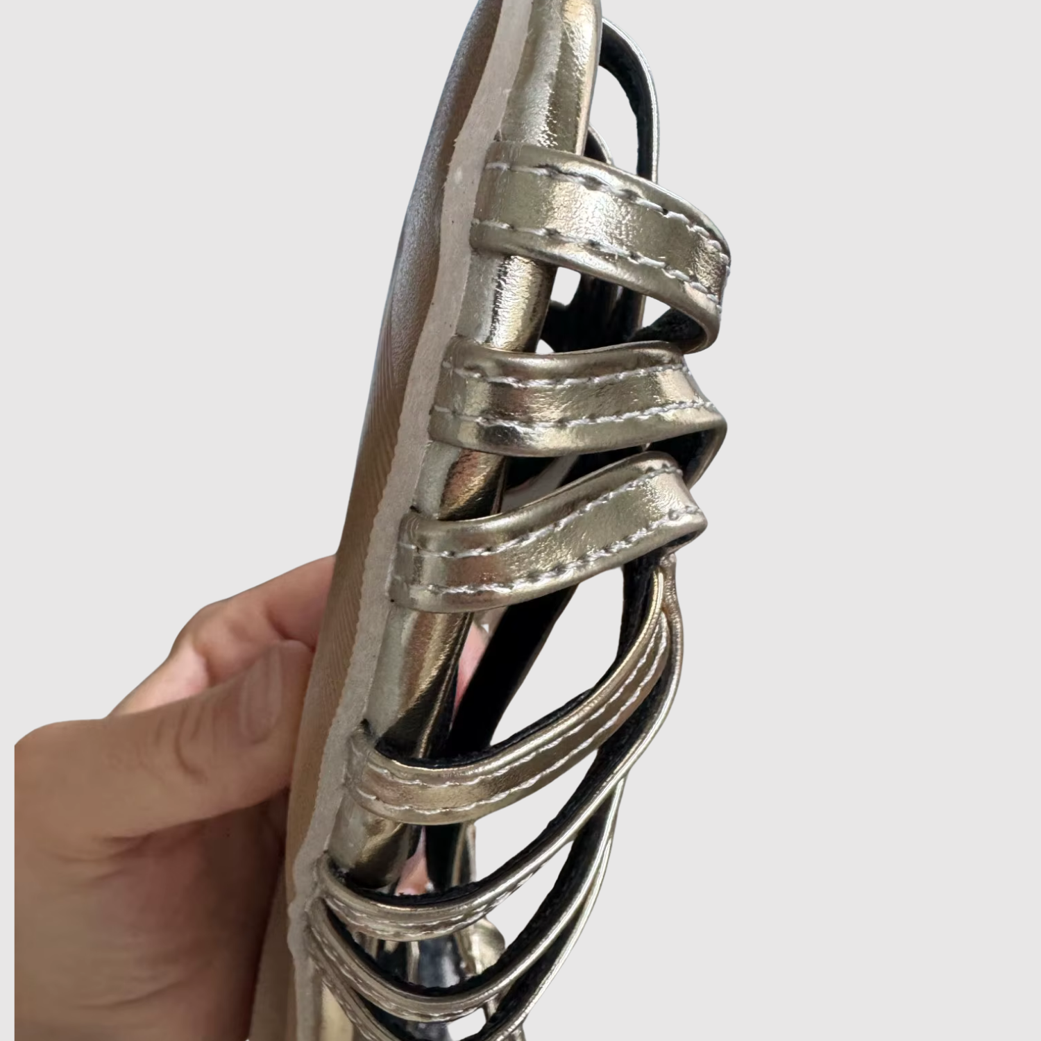Тези сандали комбинират вечен дизайн с модерен метален блясък. Те са леки, удобни и добавят нотка на блясък към всяко облекло.