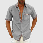 Нашата къс ръкав casual риза е идеалният избор за слънчеви дни, градски разходки или вечери с неформален стил. С деликатни дизайнерски детайли на яката и джоба, тя без усилие съчетава елегантност с пълно удобство. Перфектна за тези, които ценят простотата с отличителен акцент.