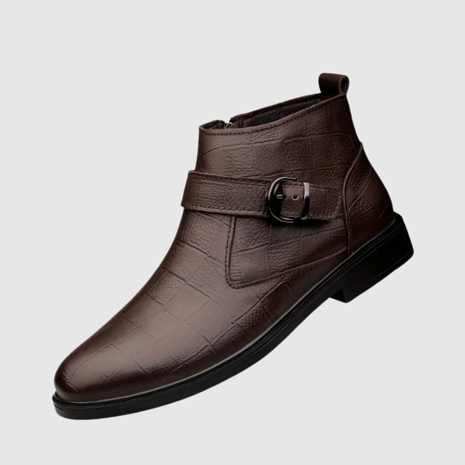 Ботушите Хенрик с катарама са създадени за мъже, които ценят изтънчената простота. Гладката кожена повърхност, в комбинация с елегантната катарама, придава вечен и изискан вид, който идеално подхожда както за формални поводи, така и за ежедневна употреба. Удобното прилягане и леко гъвкавата подметка осигуряват приятно изживяване през целия ден.