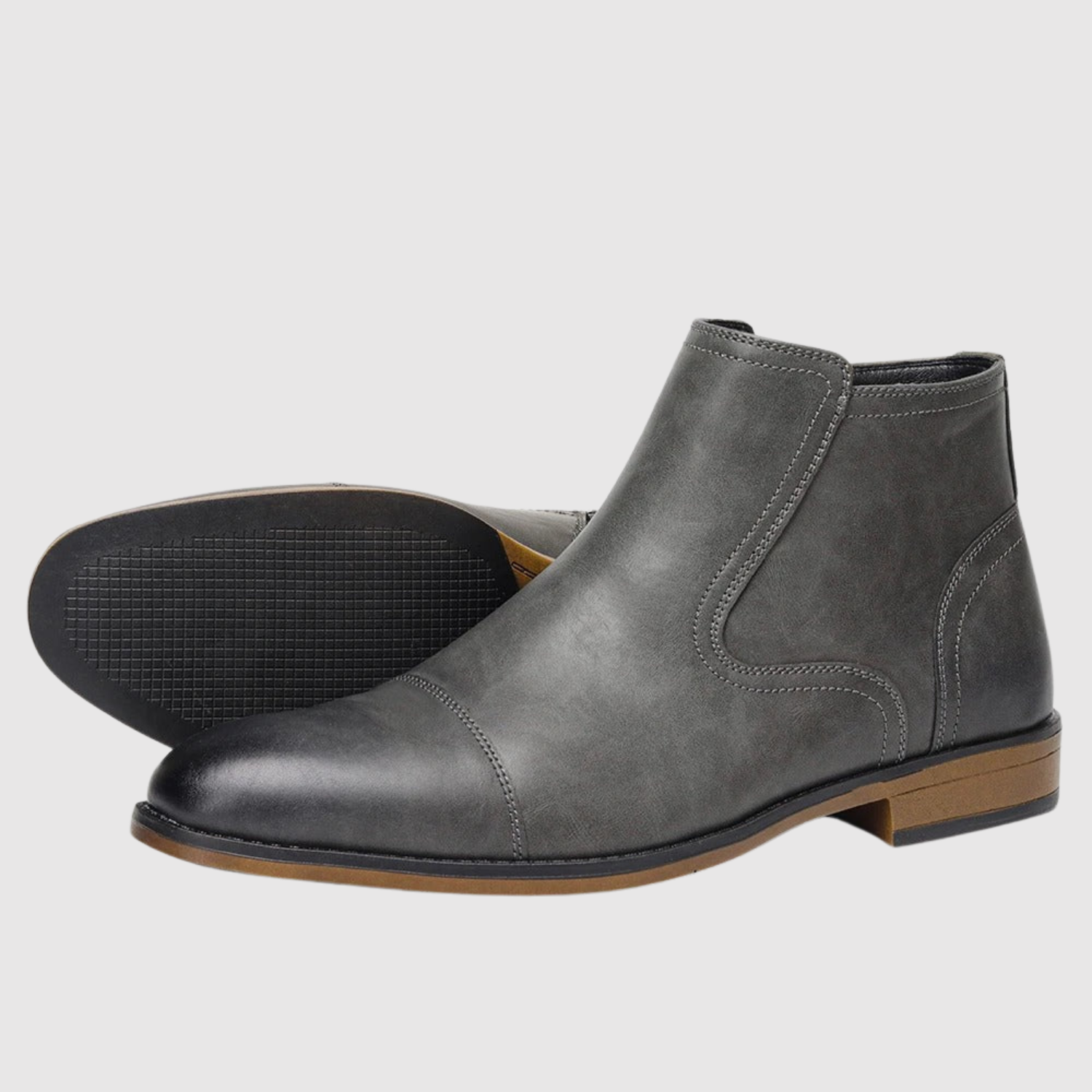 Тези стилни кожени ботуши се отличават с чисти линии и практично закопчаване с цип отстрани. Елегантният силует ги прави подходящи както за формални, така и за неформални аутфити, докато стабилната подметка осигурява комфорт през целия ден.