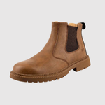 Тези челси ботуши от кожа са проектирани да предадат здрав и модерен вид. Мощната гумена подметка осигурява отлична стабилност, докато еластичните страни ги правят лесни за обуване. Идеален избор както за ежедневието, така и за уикенда с по-остър стил.