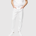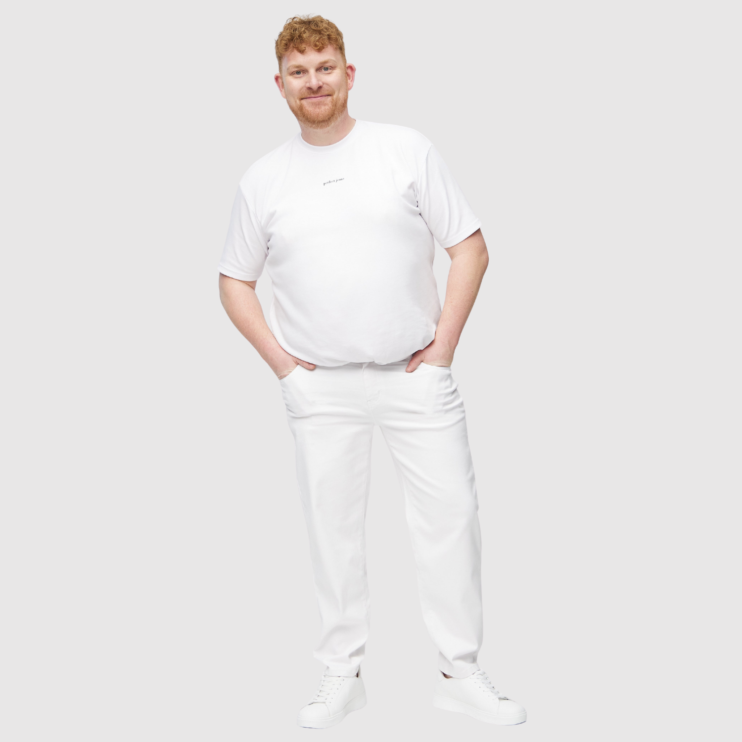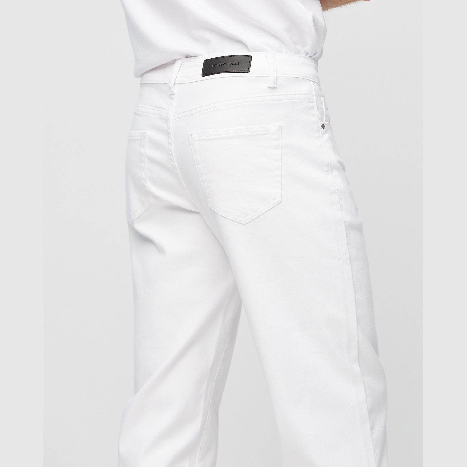 Тези дънки с нормална кройка в бяло предлагат чист и елегантен вид, който може да се комбинира както за ежедневни, така и за празнични поводи. Специално тъканата памучна материя е удобна, еластична и осигурява комфорт без да е прозрачна.