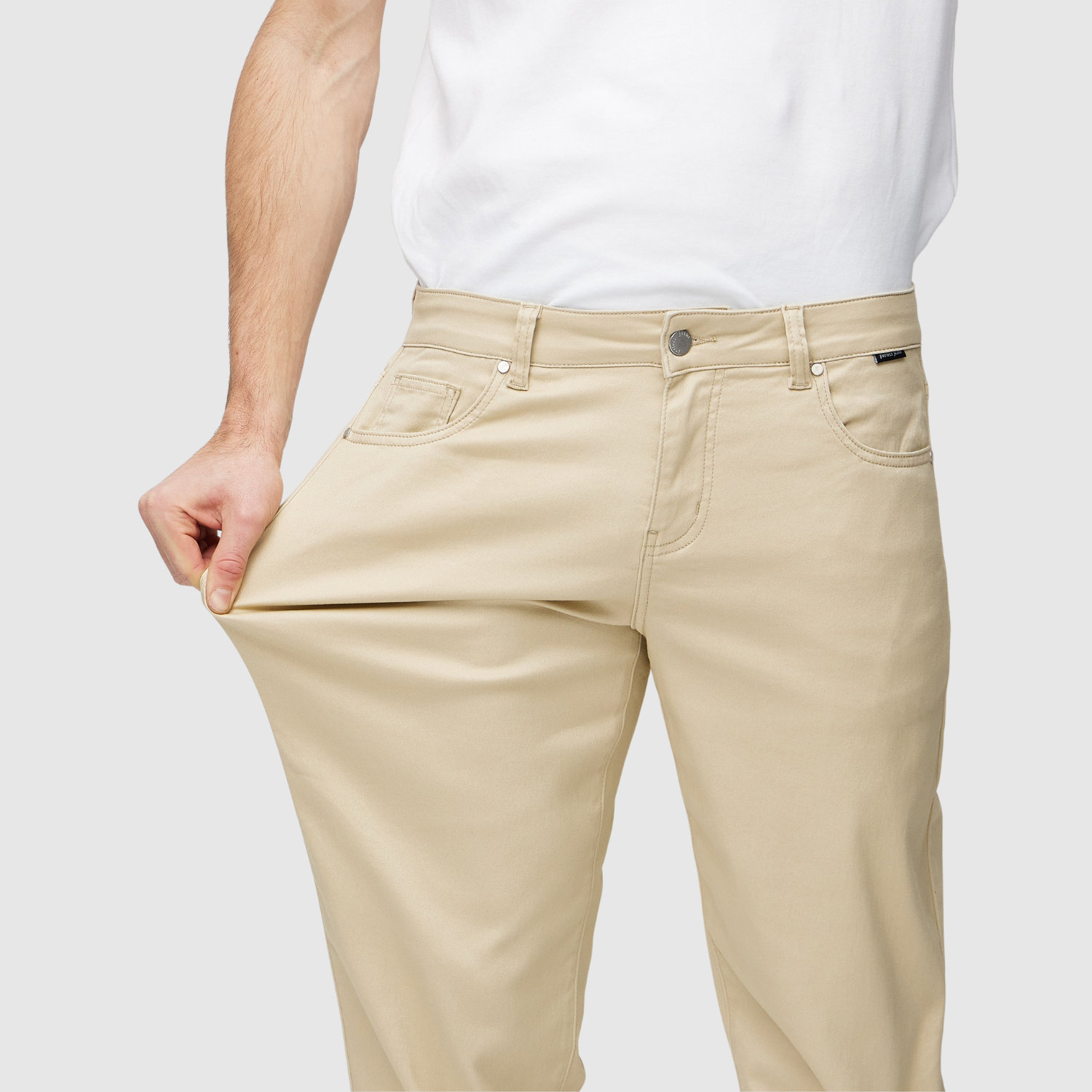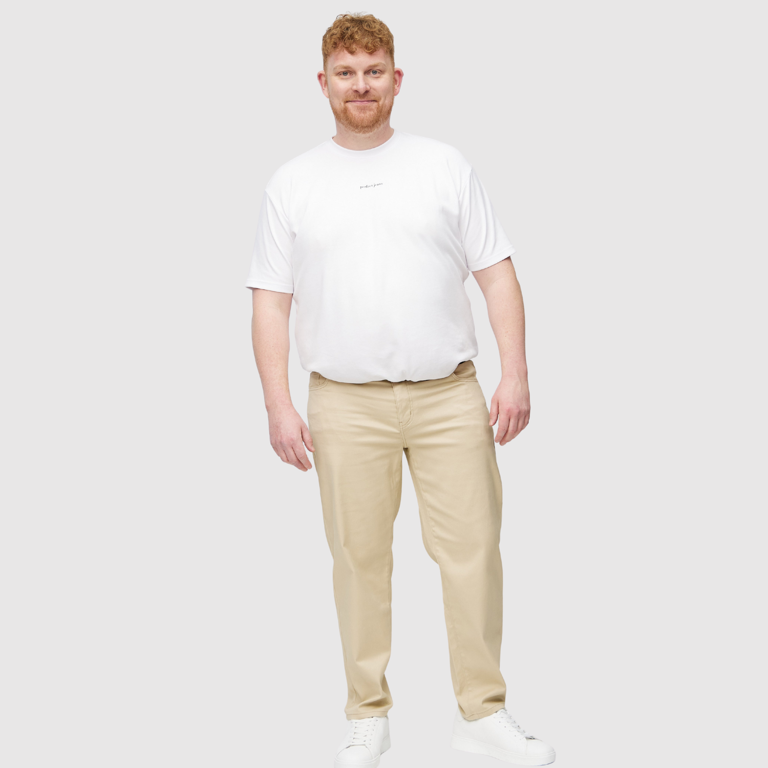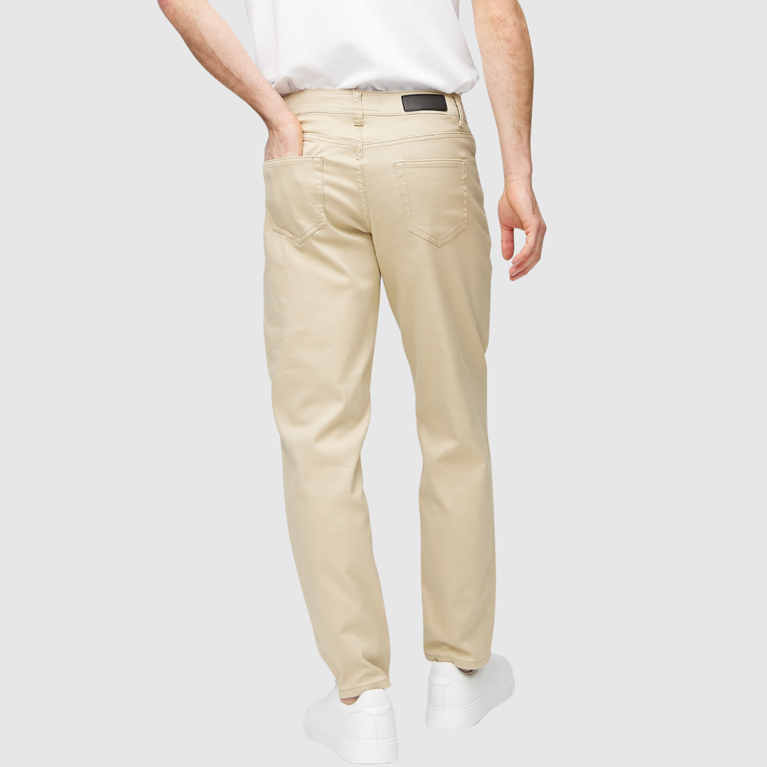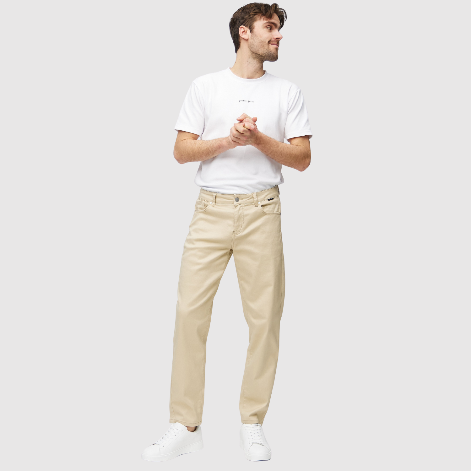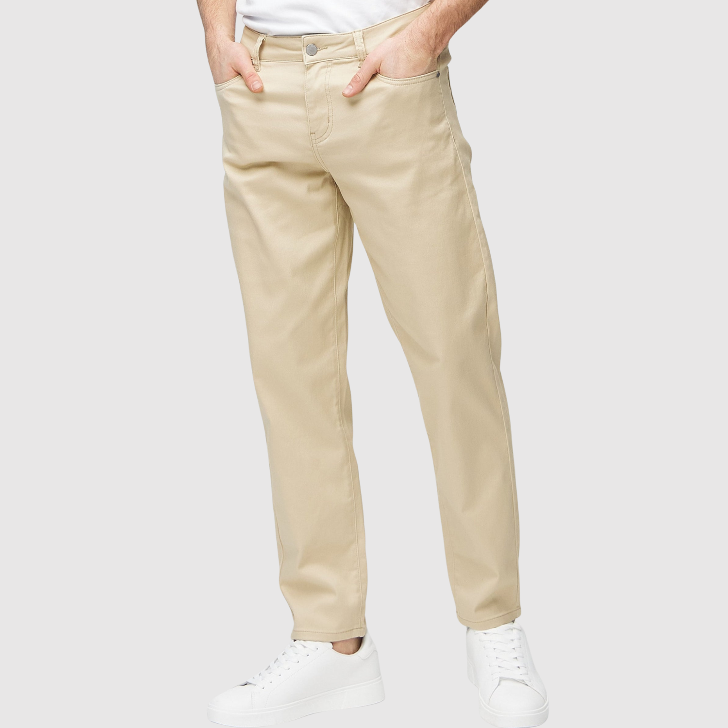 Тези бежови дънки с нормална кройка са свежа алтернатива на класическия деним. Неутралният цвят ги прави лесни за стилизиране с ризи и тениски, докато еластичната материя осигурява комфорт и свобода на движение през целия ден.