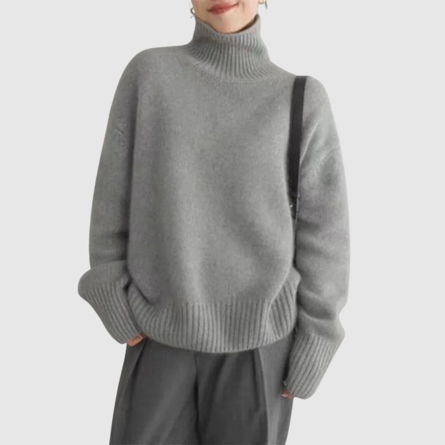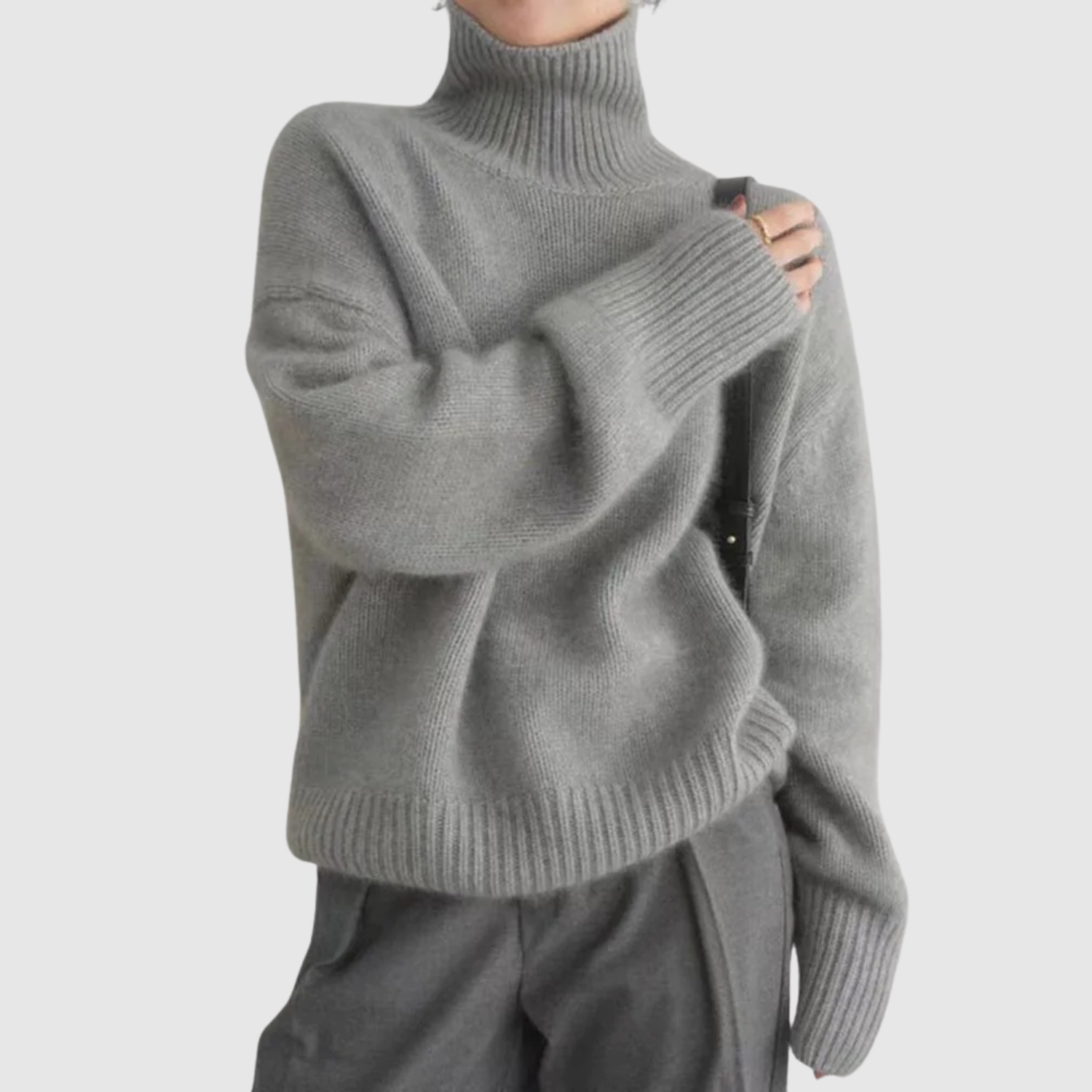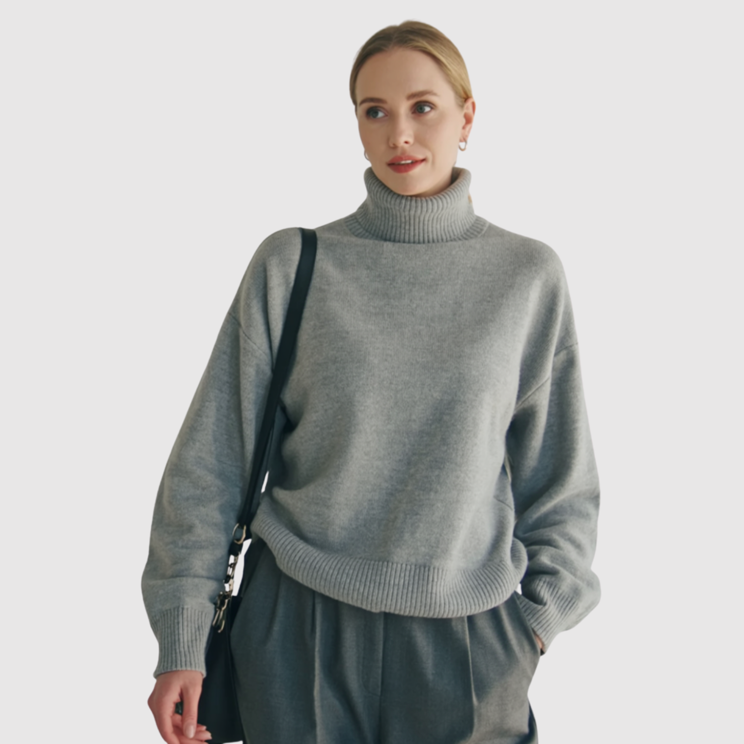 Този пуловер с висока яка е създаден за жената, която обича топлината и елегантната визия. Меката му текстура осигурява уют през студените дни, а изчистеният дизайн подчертава женствеността и класа.
