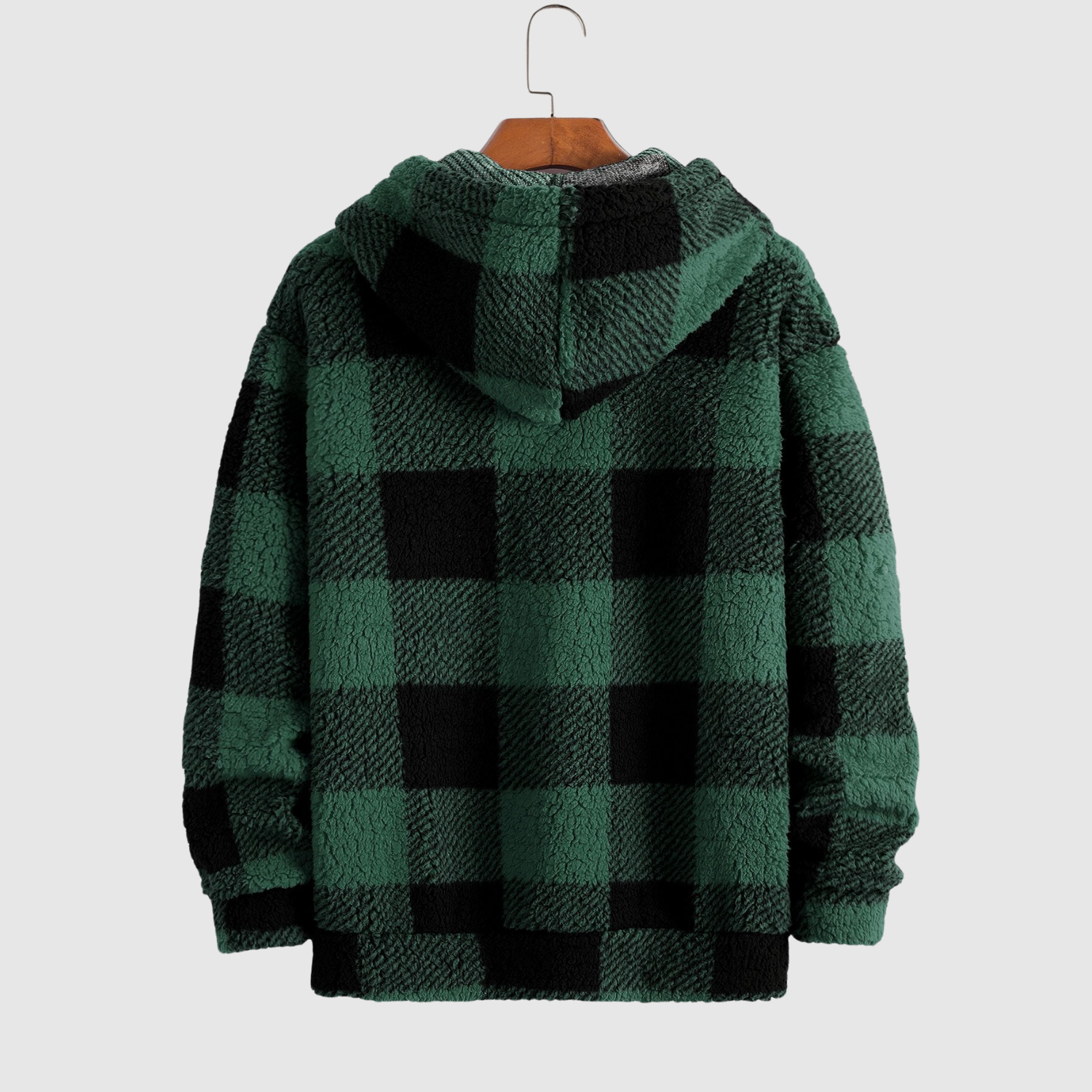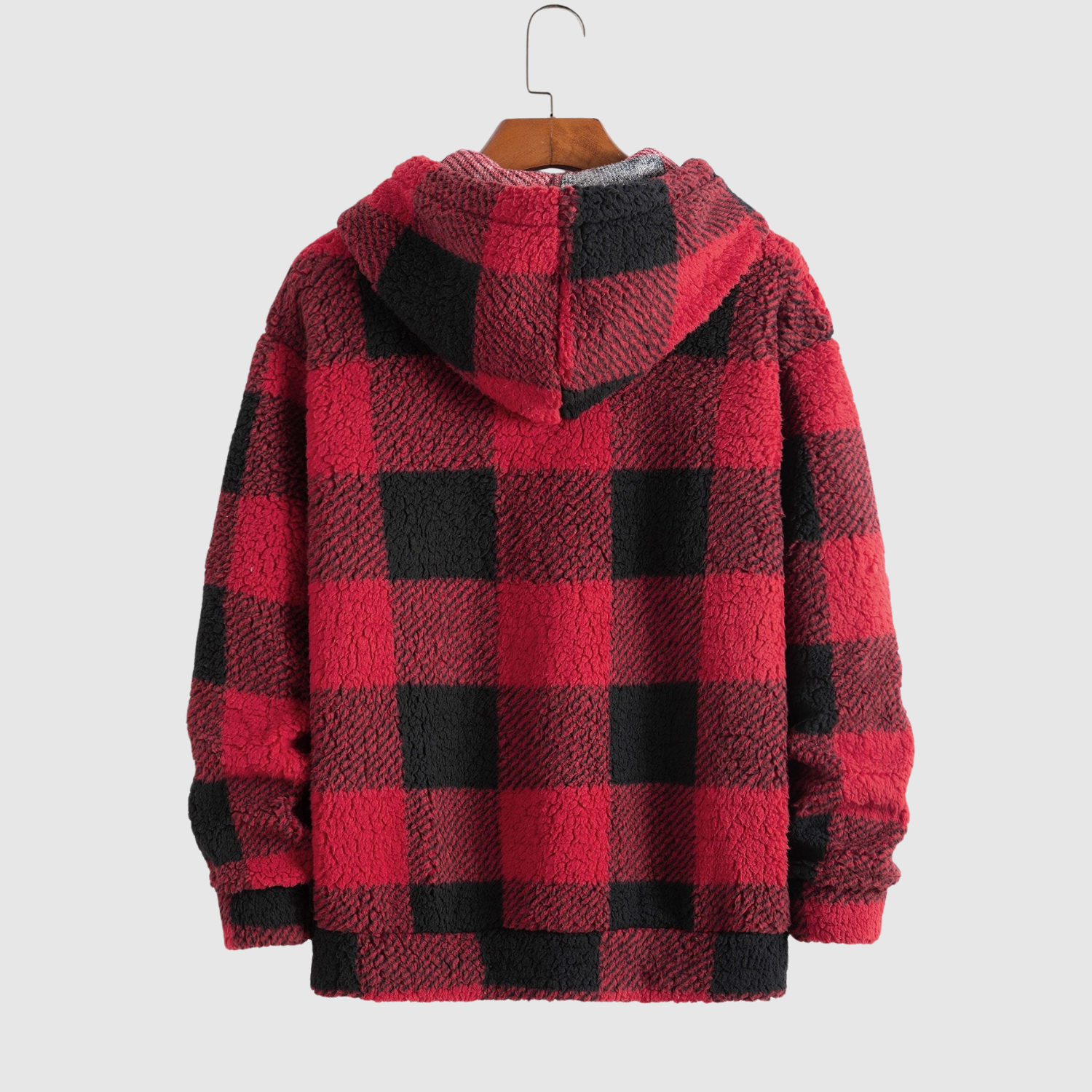 Уютно худи от мек тедди флийс с иконичен каре дизайн. То предлага както топлина, така и груб, неформален вид – перфектно за студените зимни дни или небрежно улично облекло.