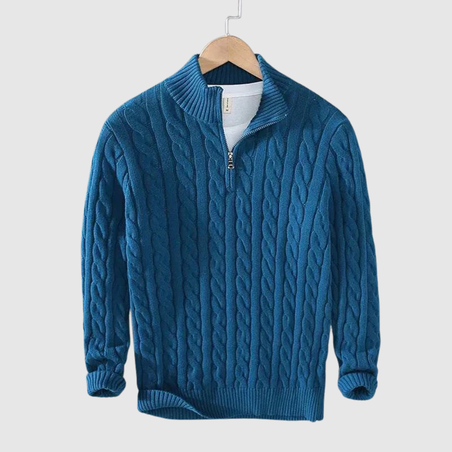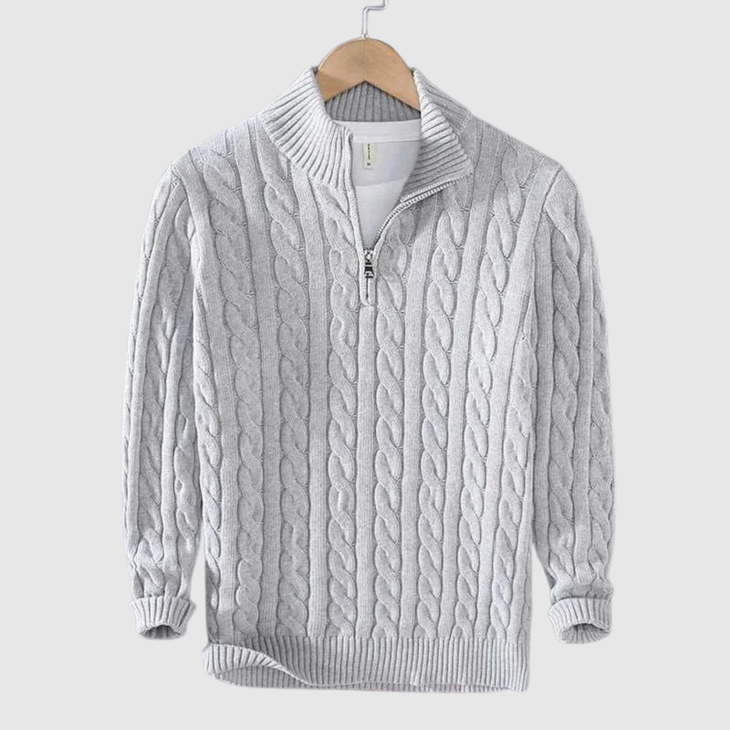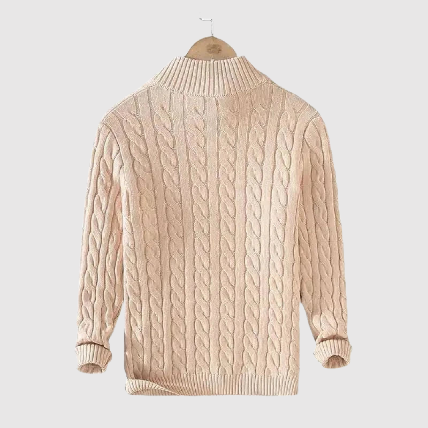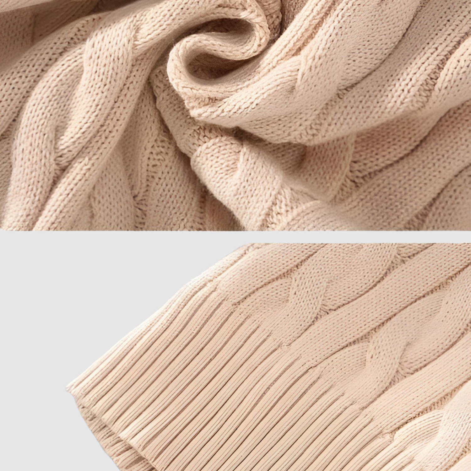 Вечен кабелен пуловер с V-образно деколте, който комбинира класически стил с модерна комфорт. Мекото, дишащо материало го прави идеален както за неформални, така и за по-официални поводи.