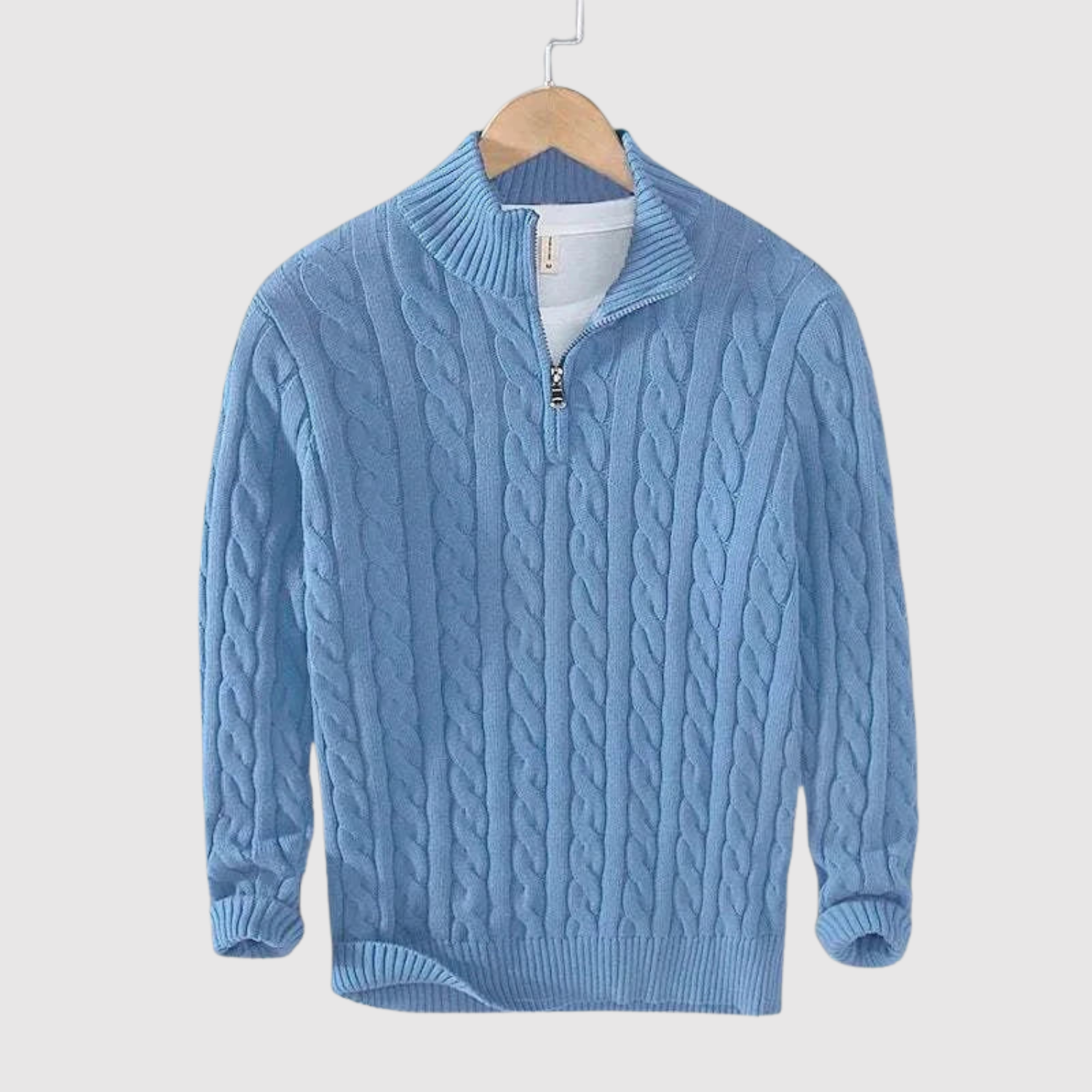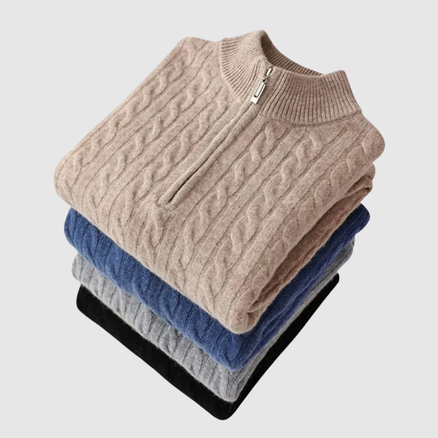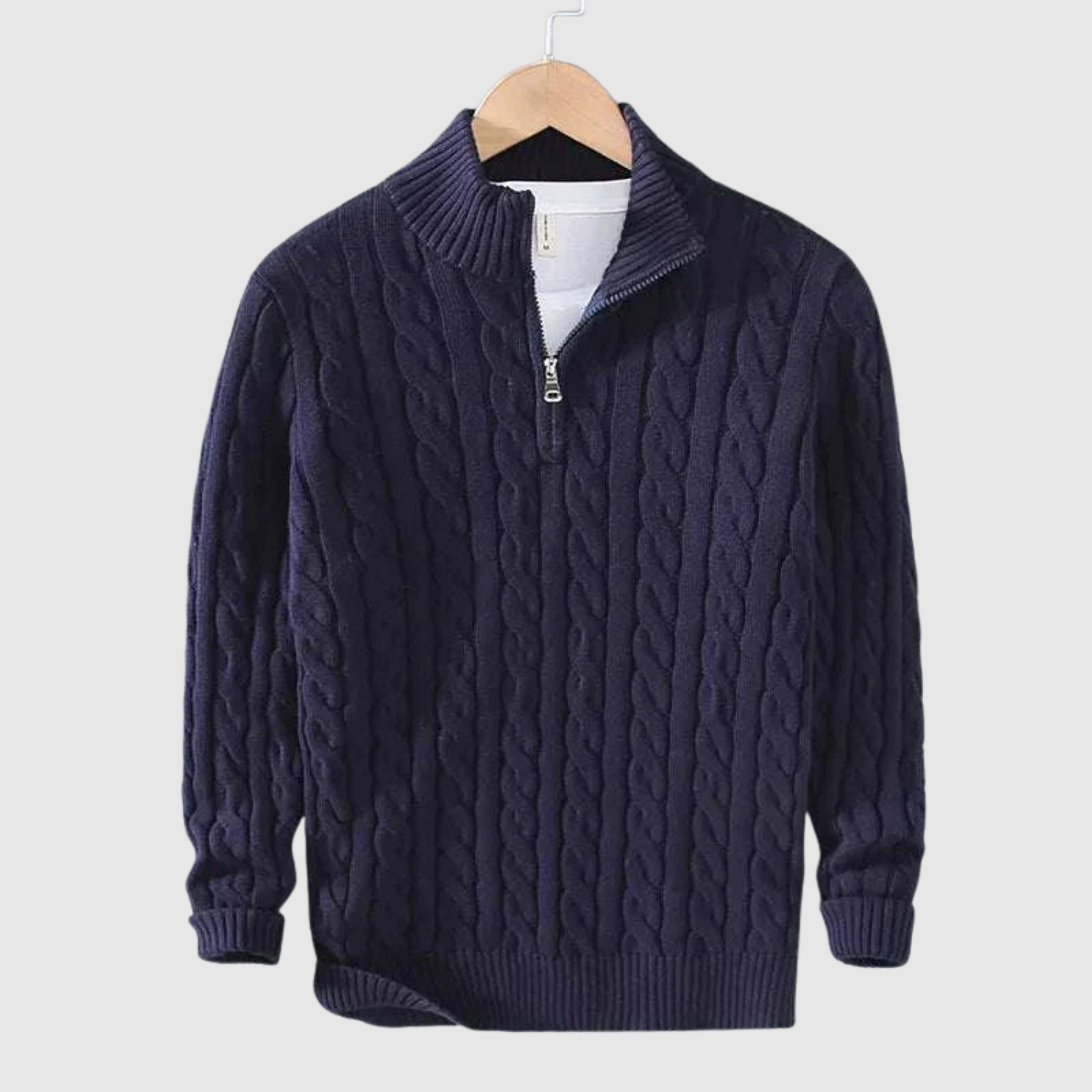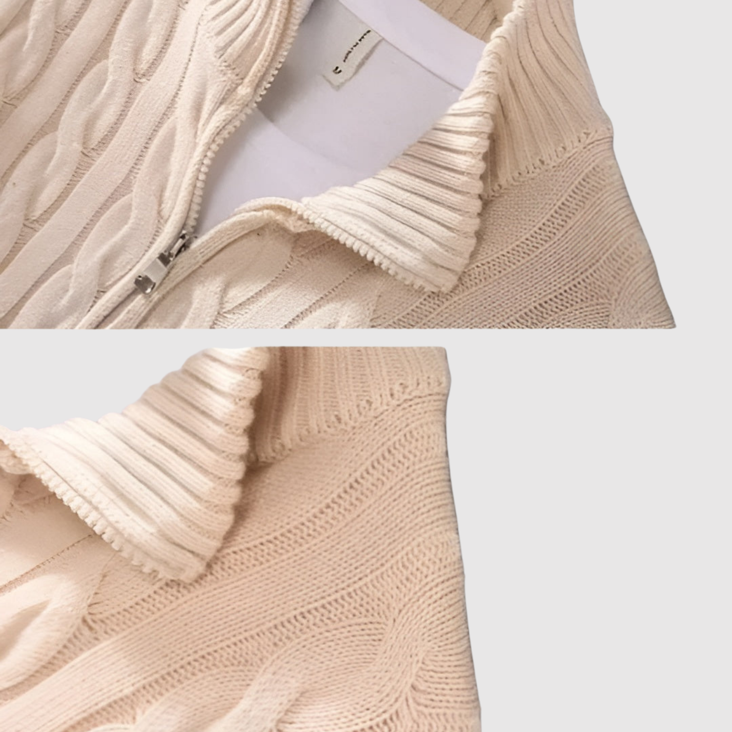 Вечен кабелен пуловер с V-образно деколте, който комбинира класически стил с модерна комфорт. Мекото, дишащо материало го прави идеален както за неформални, така и за по-официални поводи.