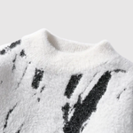 Модерен и привлекателен пуловер с абстрактен модел, напомнящ на четка. Мекото качество осигурява комфорт през целия ден, докато дизайнът добавя уникален артистичен акцент към зимния гардероб.