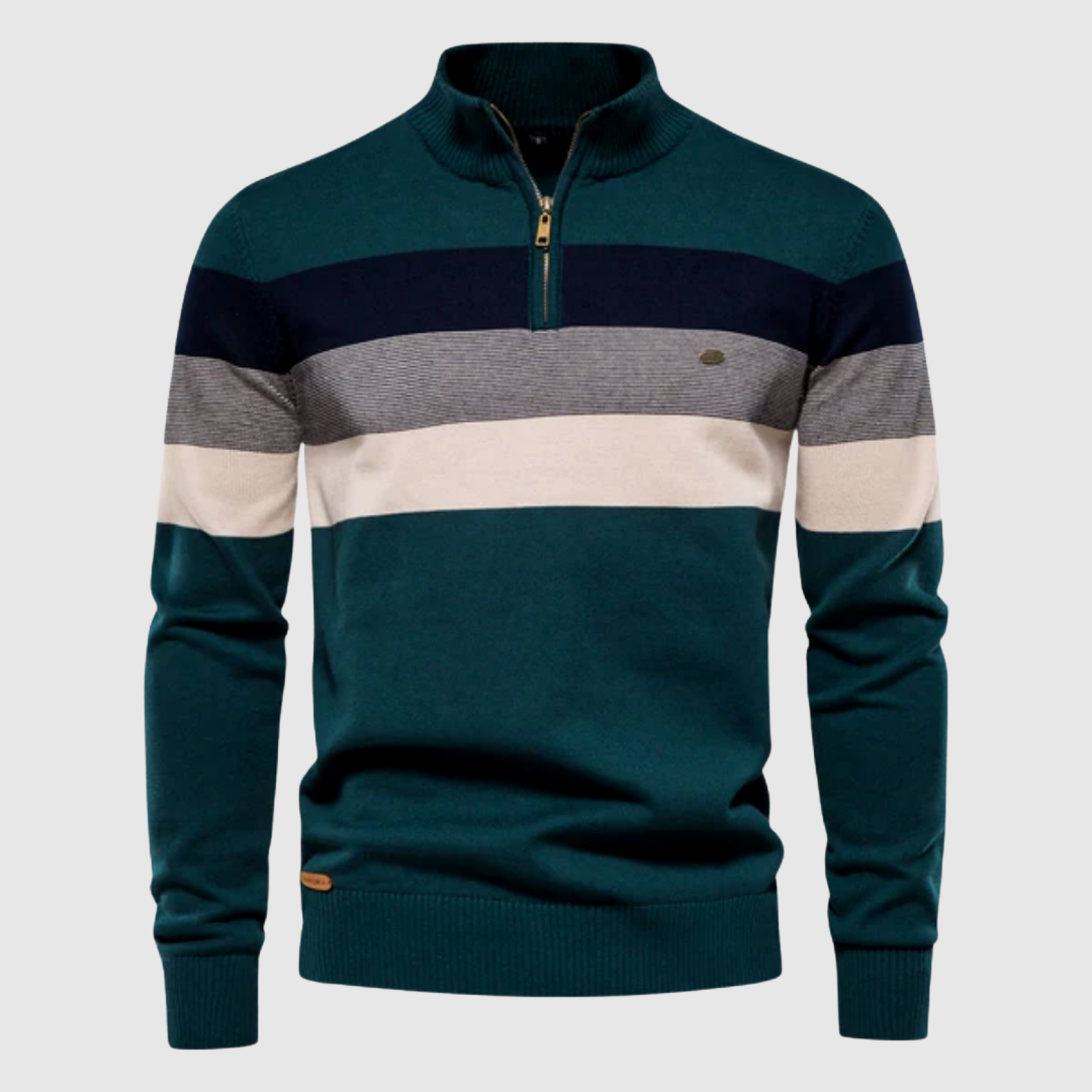 Даниел – Пуловер с половин цип и широки ивици